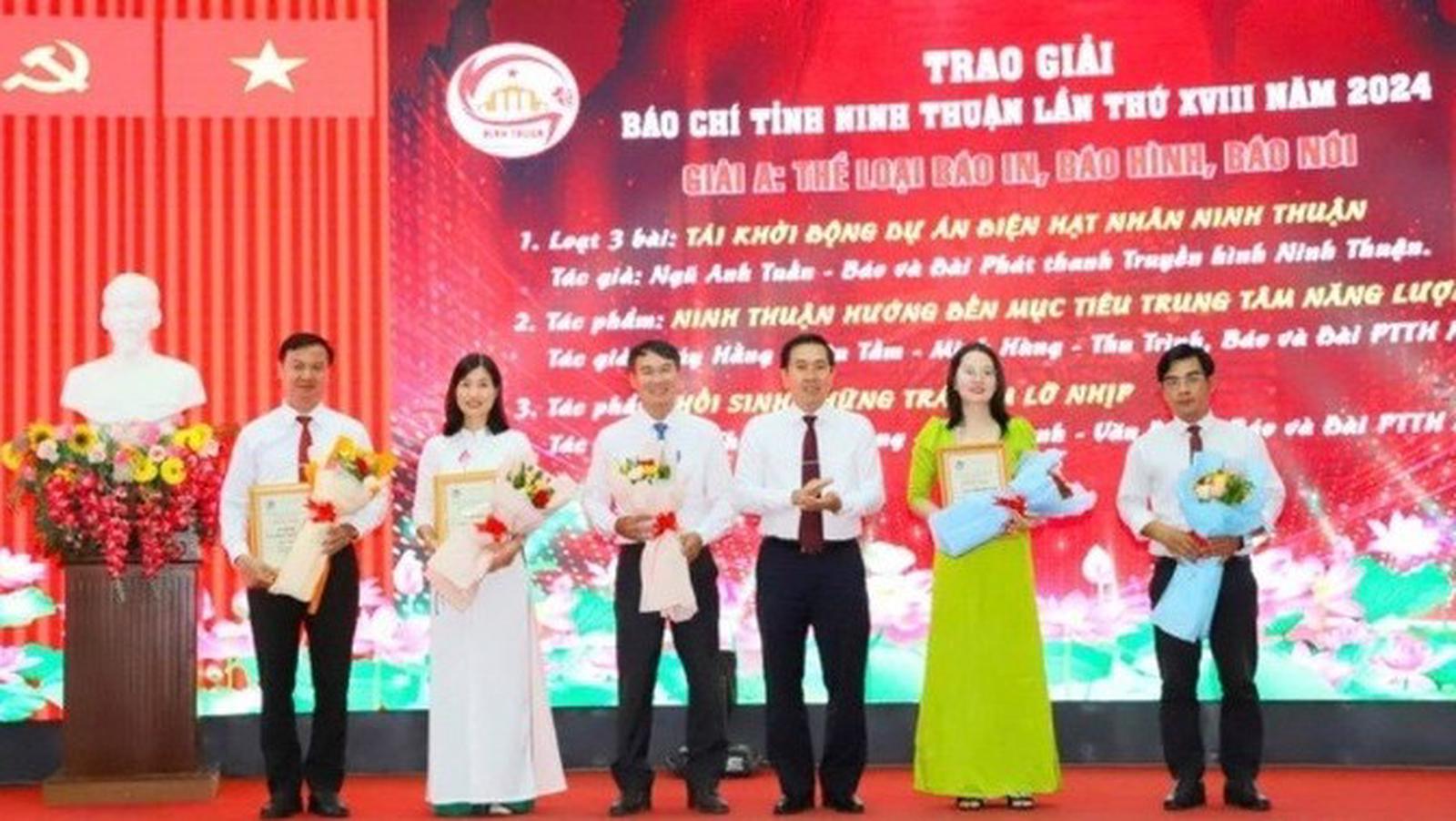 Tại buổi lễ, ông Nguyễn Long Biên, Phó Chủ tịch UBND tỉnh Ninh Thuận, Chủ tịch Hội đồng Giải báo chí tỉnh Ninh Thuận lần thứ 18 đã biểu dương đội ngũ người làm báo trong tỉnh, phóng viên các báo Trung ương đã nỗ lực để có nhiều tác phẩm hay, có giá trị, góp phần vào xây dựng kinh tế - xã hội của Ninh Thuận ngày càng phát triển. Hội đồng Giải báo chí tỉnh Ninh Thuận lần thứ 18 đã trao 3 Giải A, 4 Giải B, 4 Giải C và 3 Giải Khuyến khích cho các tác giả có tác phẩm xuất sắc đạt các giải theo các thể loại: báo in, truyền hình và phát thanh.