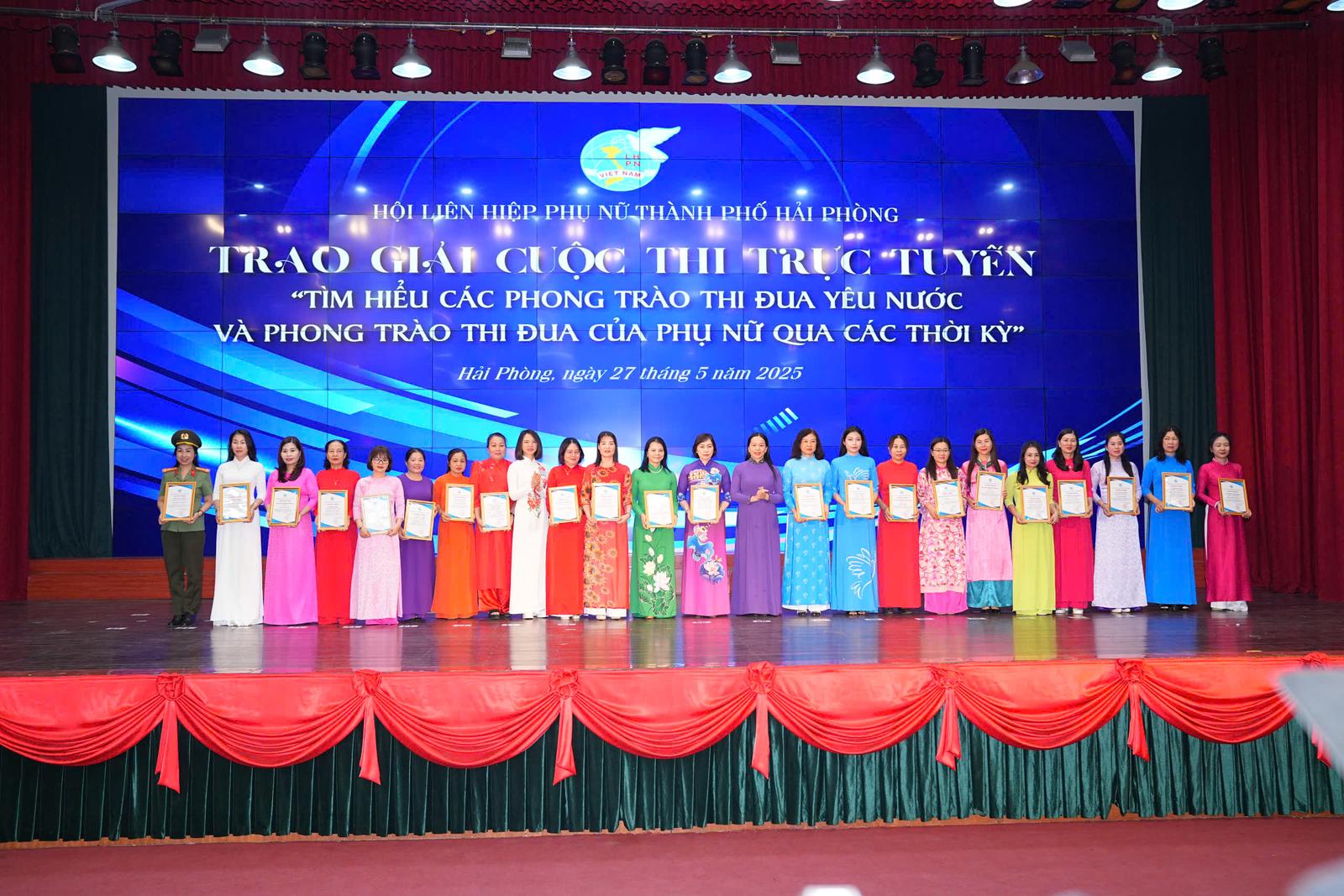 Trao giải Cuộc thi trực tuyến tìm hiểu về các phong trào thi đua yêu nước cho 3 tập thể có thành tích xuất sắc trong công tác vận động cán bộ, hội viên phụ nữ và nhân dân tham gia. Cuộc thi đã ghi nhận kết quả: 03 giải Nhất, 06 giải Nhì, 09 giải Ba và 02 giải phụ cho phần dự đoán đúng.
