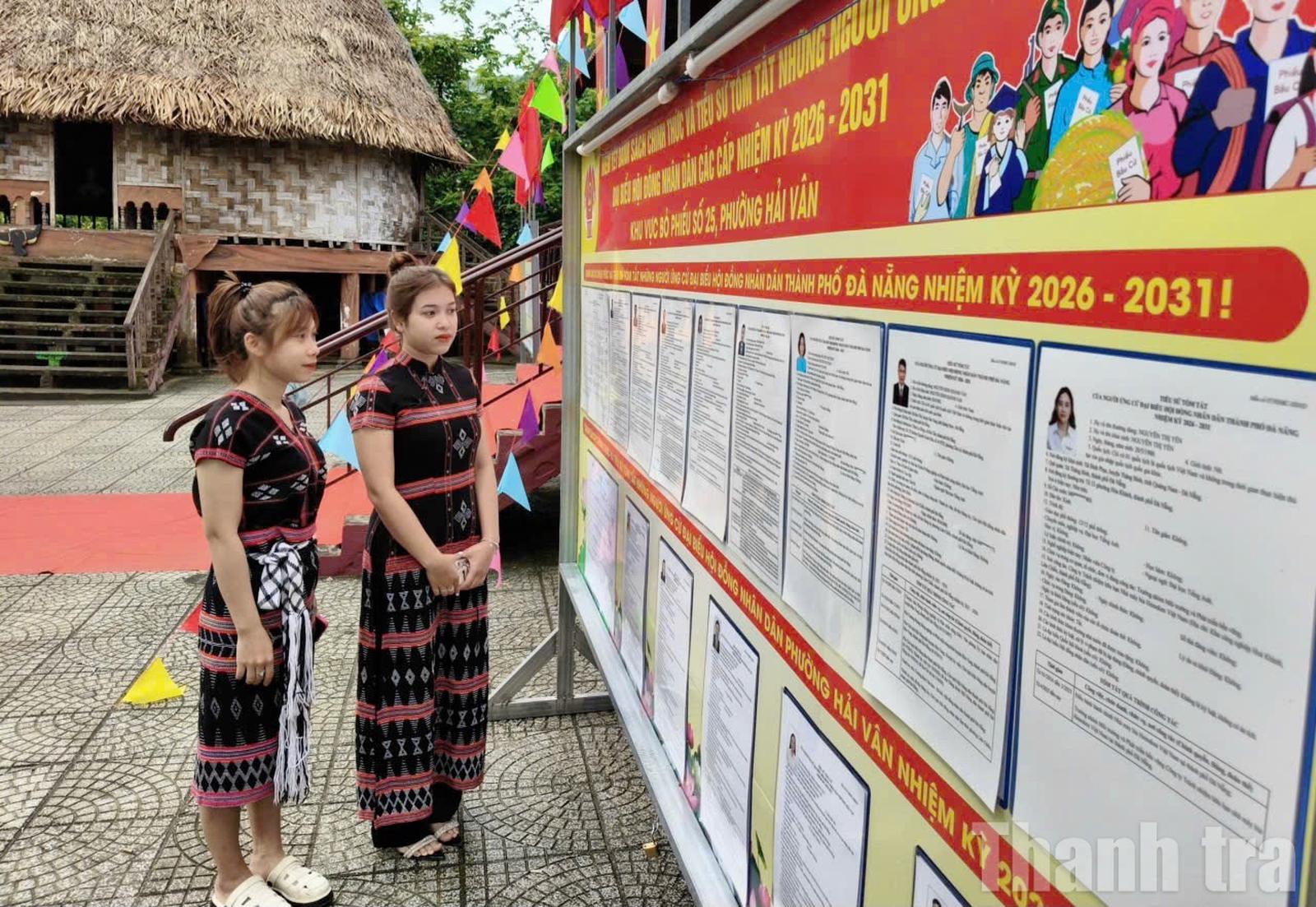 Cử tri Bùi Thị Thúy Vi cùng bạn đi bỏ phiếu tại khu vực bỏ phiếu số 25, phường Hải Vân, thành phố Đà Nẵng. Ảnh Đức Nghị