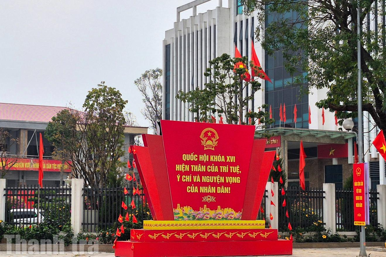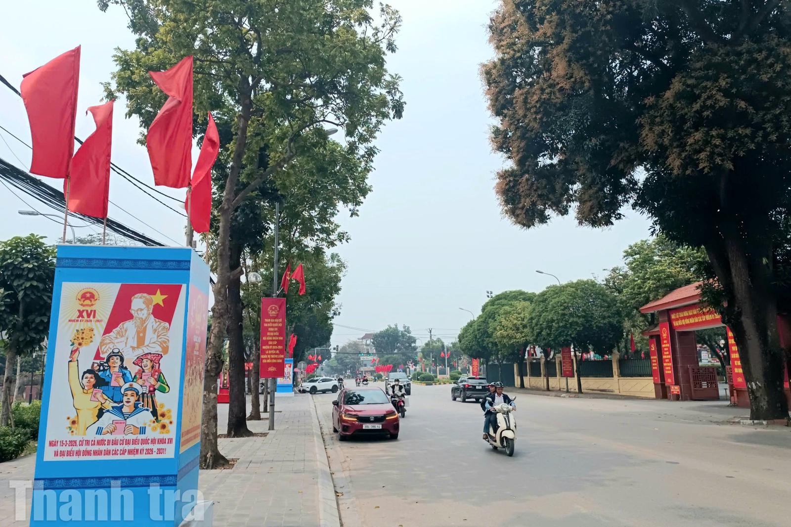 Hệ thống pano, áp phích và khẩu hiệu về ngày bầu cử được bố trí trang trọng tại các khu vực trung tâm các tuyến đường chính, các đường làng, ngõ xóm và các điểm bỏ phiếu.