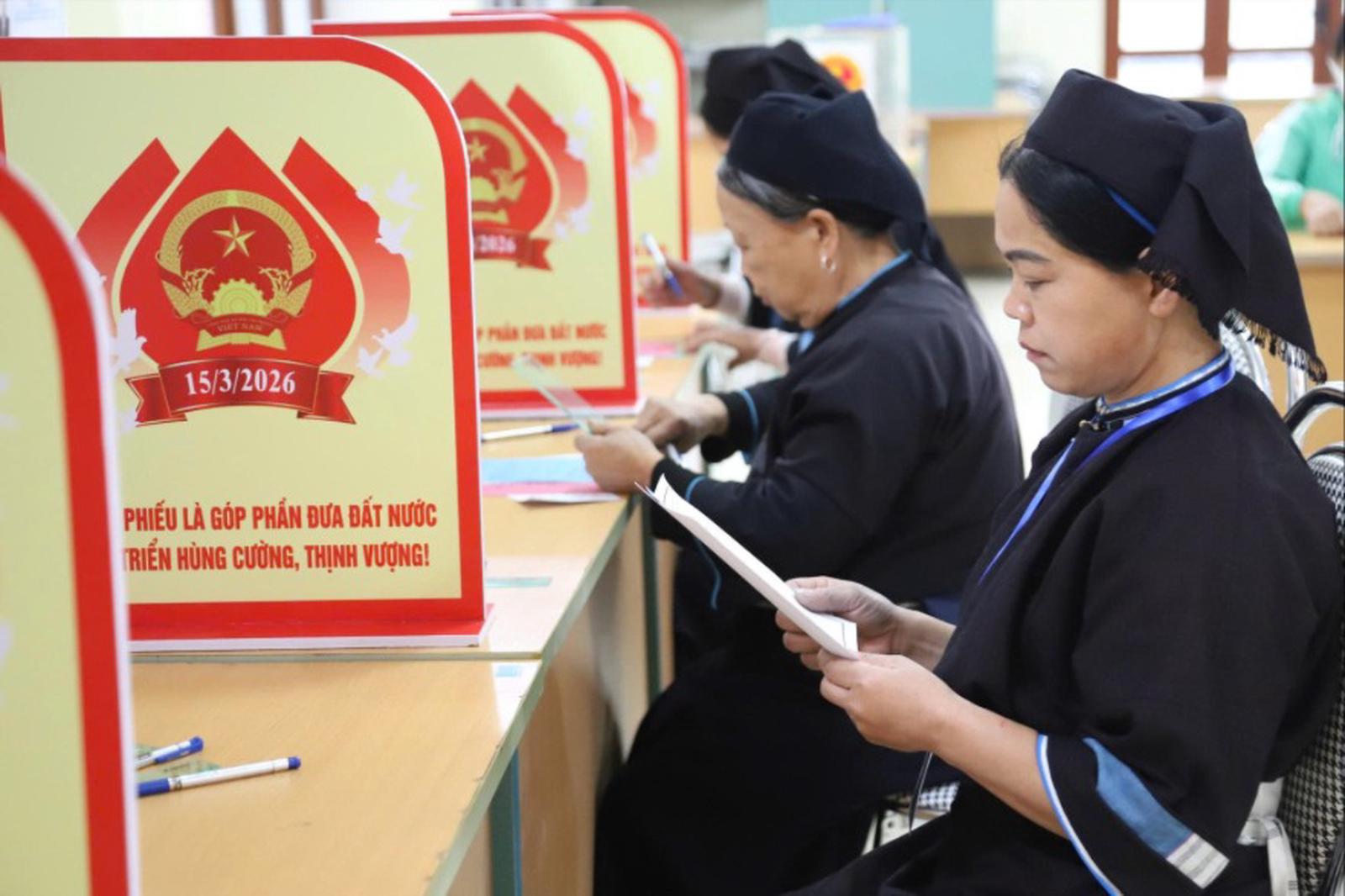 Cử tri Cao Bằng tham gia bầu cử với tinh thần trách nhiệm cao, thực hiện quyền và nghĩa vụ công dân. Ảnh: Thúy Hằng