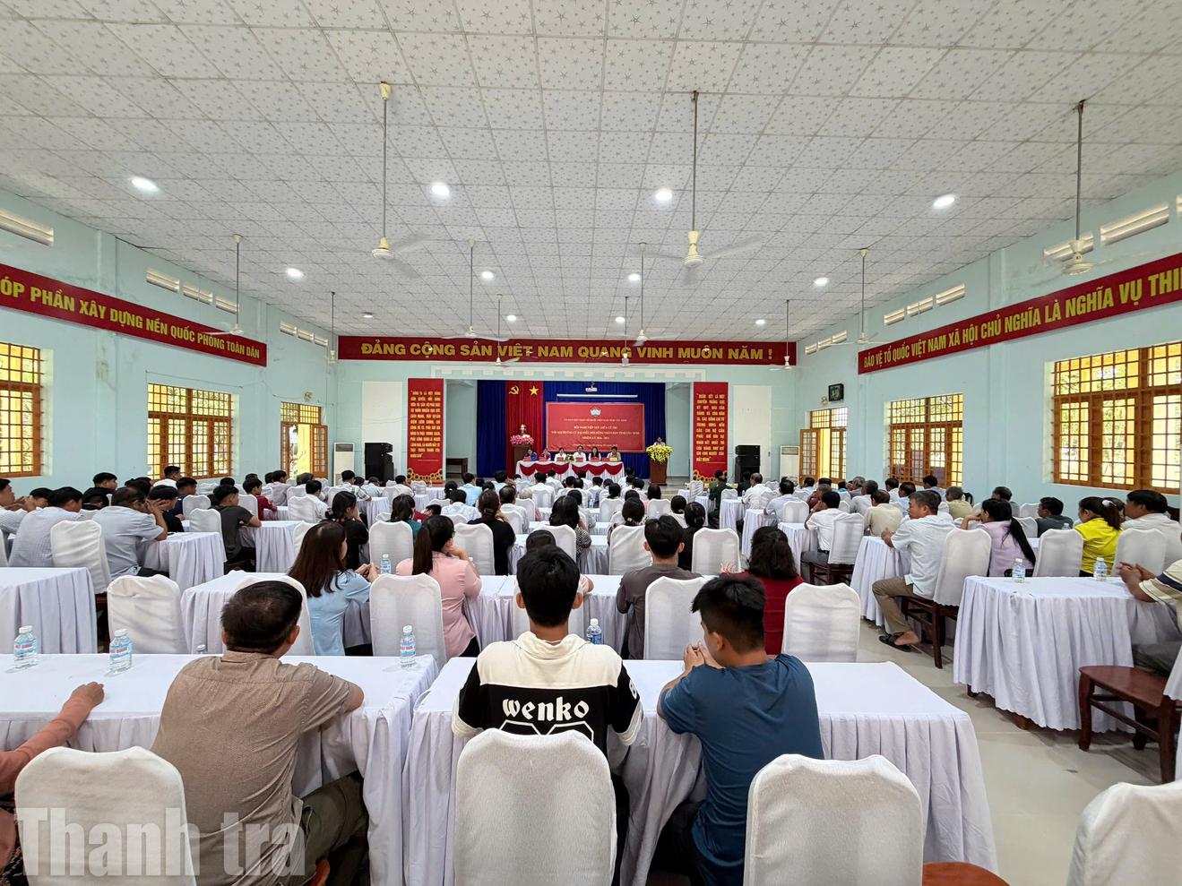 Các ứng cử viên thuộc đơn vị bầu cử số 12 tiếp xúc cử tri tại xã Phước Chỉ. Ảnh: Thu Huyền