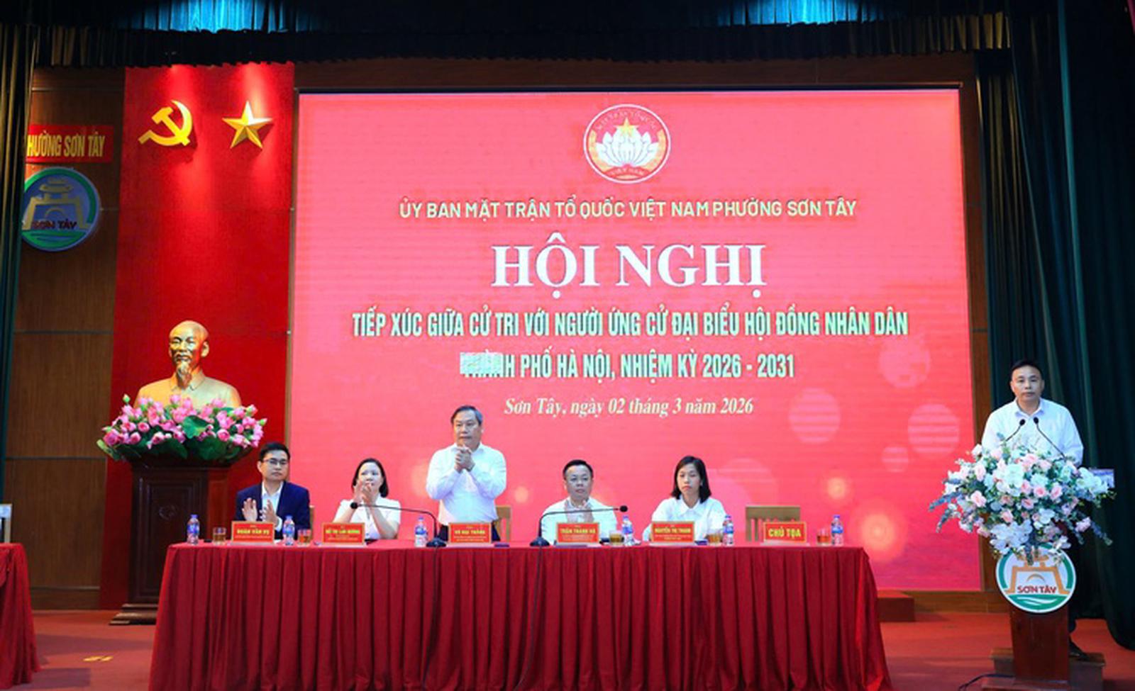 Sáng 2/3, Chủ tịch UBND TP Hà Nội Vũ Đại Thắng cùng các ứng cử viên đại biểu HĐND TP Hà Nội, nhiệm kỳ 2026-2031, tiếp xúc cử tri và thực hiện vận động bầu cử tại đơn vị bầu cử số 14 gồm các phường Sơn Tây, Tùng Thiện và xã Đoài Phương.