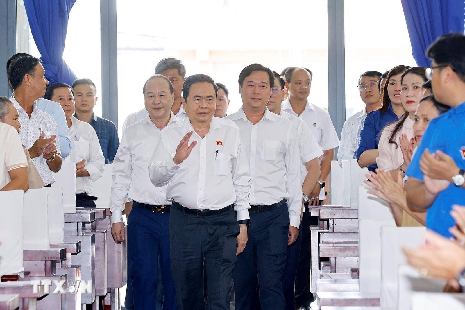Chủ tịch Quốc hội Trần Thanh Mẫn tiếp xúc cử tri tại xã Tân An Hội, Thành phố Hồ Chí Minh. Ảnh: TTXVN