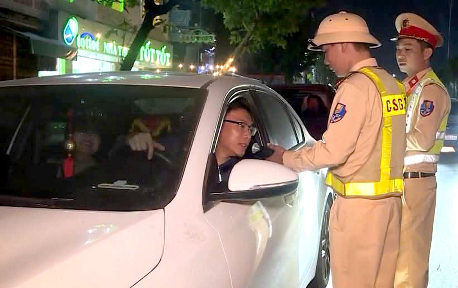 Lực lượng Cảnh sát giao thông Công an Thanh Hoá tăng cường kiểm tra nồng độ cồn với người điều khiển phương tiện tham gia giao thông trên địa bàn tỉnh. Ảnh: Công an Thanh Hoá