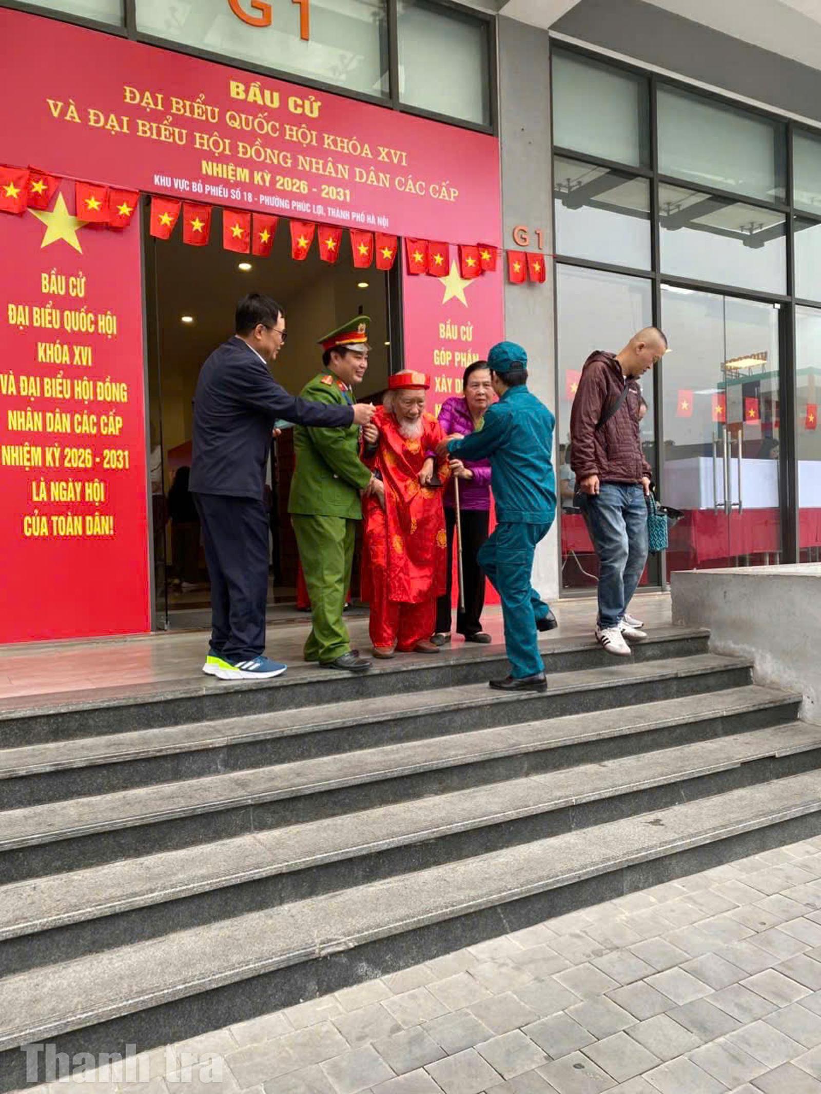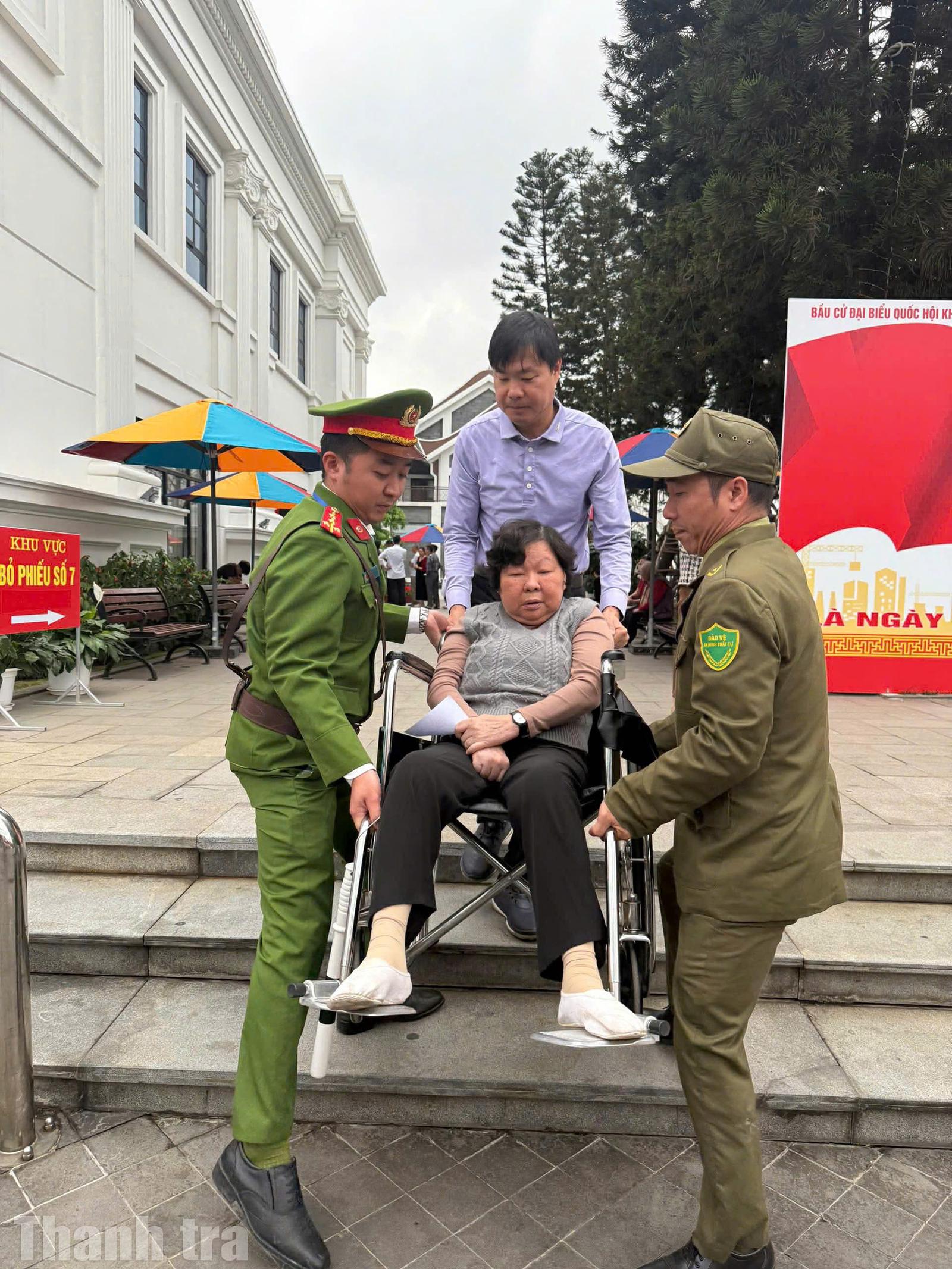 Những cụ già mái tóc bạc được dìu từng bước vào khu vực bỏ phiếu, được hướng dẫn cẩn thận để hoàn thành lá phiếu của mình. Với những trường hợp khuyết tật hoặc sức khỏe yếu, lực lượng hỗ trợ luôn sẵn sàng giúp đỡ, bảo đảm mọi công dân đều có thể thực hiện quyền bầu cử một cách thuận lợi.