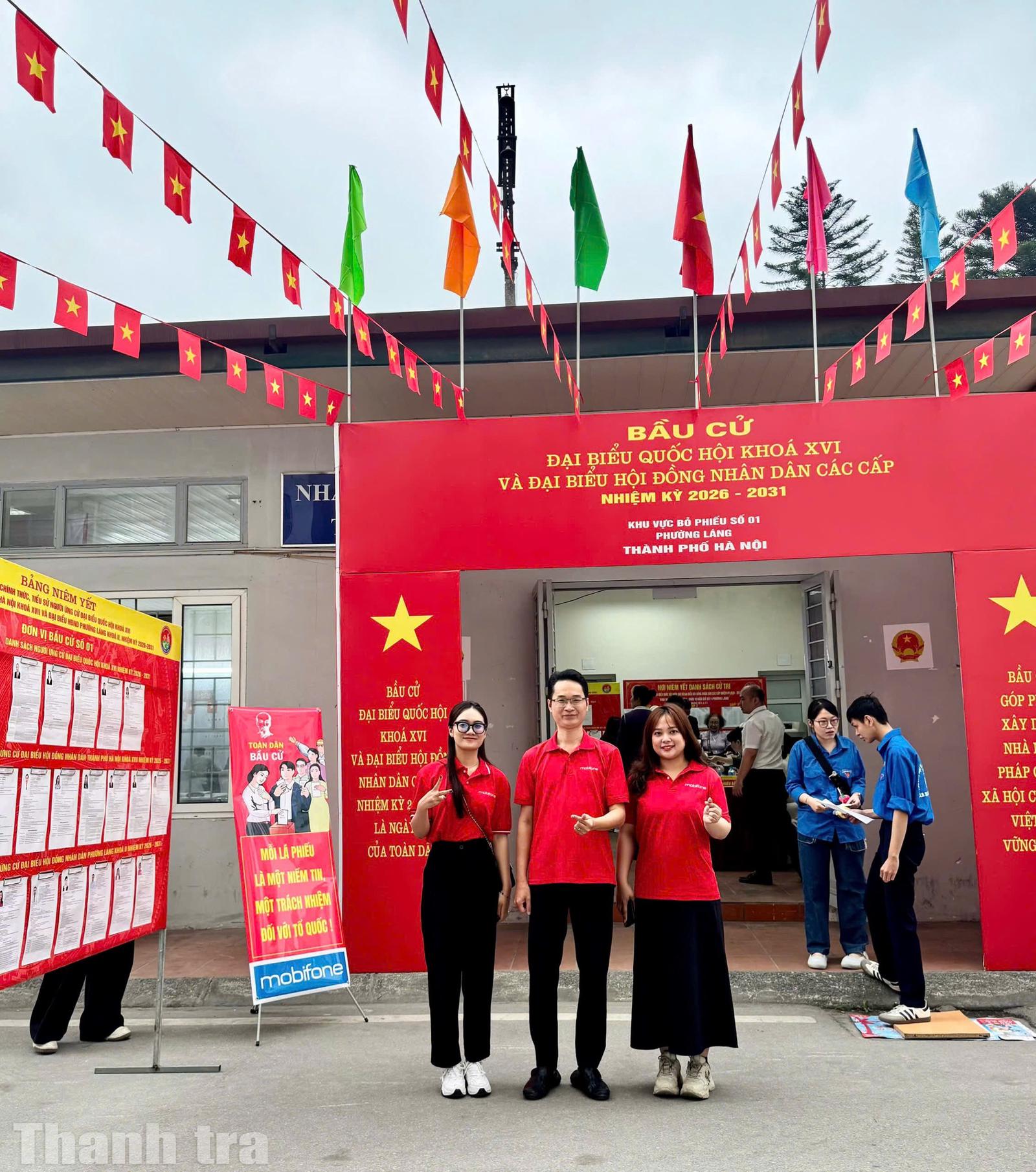 Ngay từ sáng sớm, tại các khu vực bỏ phiếu trên địa bàn phường Láng, không khí đã trở nên vô cùng náo nức và trang trọng. Cờ hoa, biểu ngữ cổ động được trang hoàng rực rỡ, tạo nên không gian của một ngày hội lớn – Ngày hội của toàn dân.