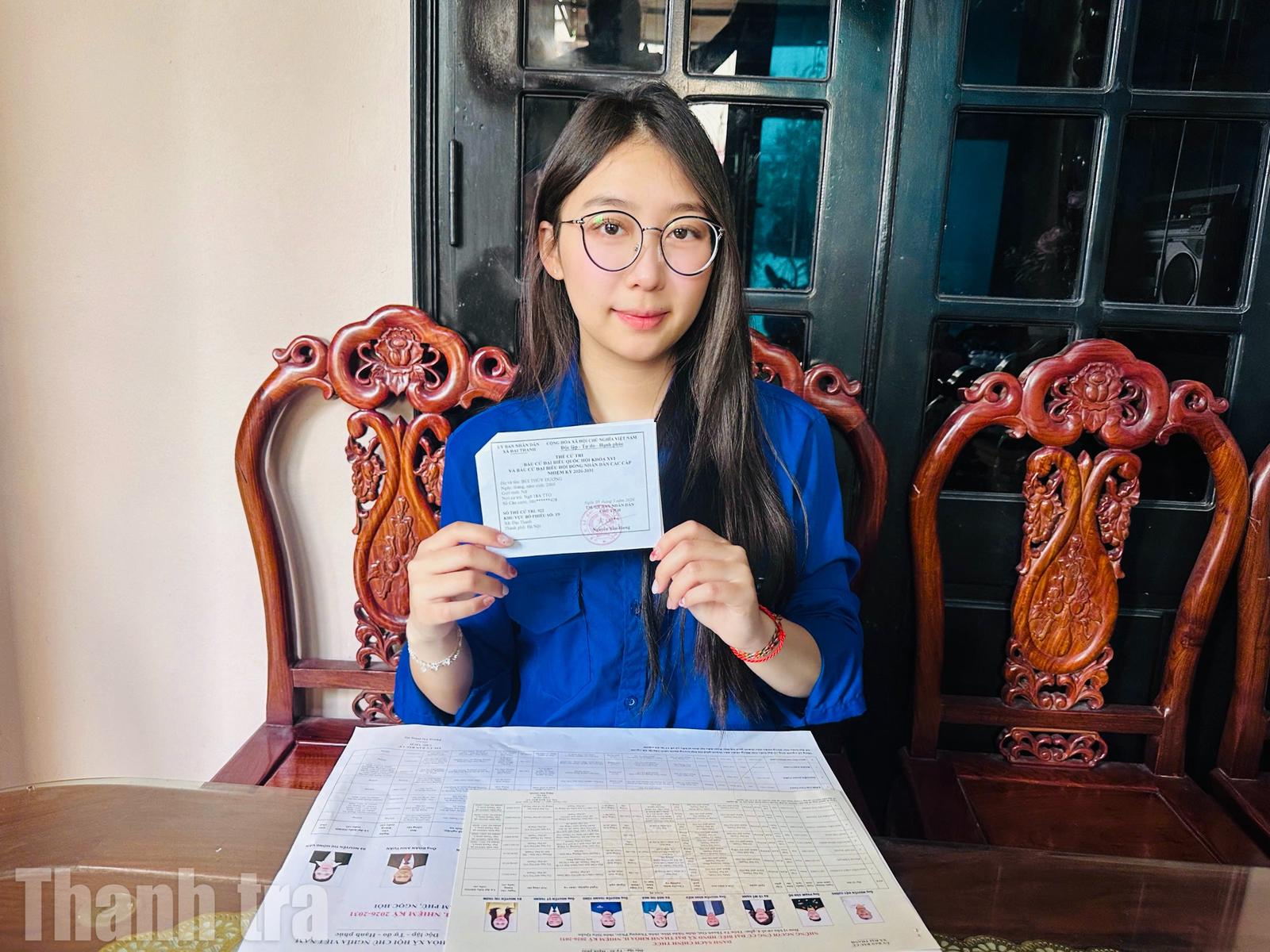 “Trước đây, chỉ bố mẹ em đi bỏ phiếu vào ngày bầu cử. Năm nay khi chính mình trở thành cử tri, em cảm nhận rõ hơn ý nghĩa của lá phiếu. Đó không chỉ là quyền lợi mà còn là trách nhiệm của mỗi công dân đối với đất nước”, Thùy Dương nói.