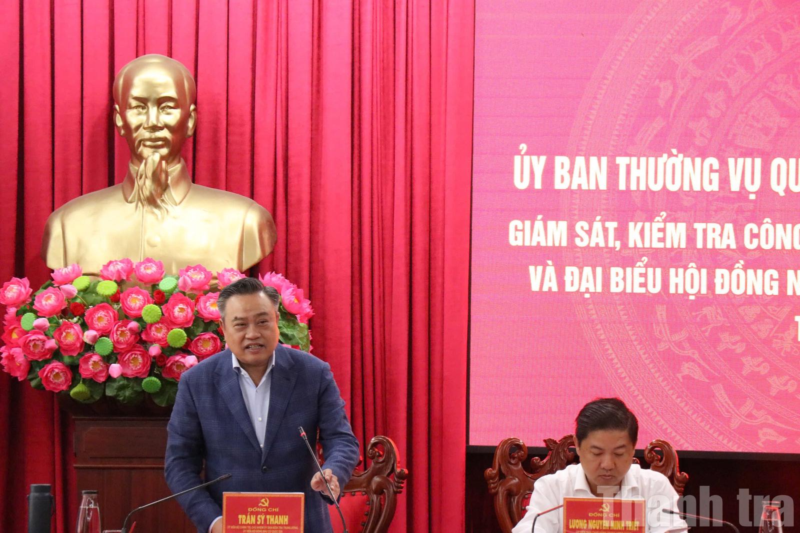 Ông Trần Sỹ Thanh, Ủy viên Bộ Chính trị, Chủ nhiệm Ủy ban Kiểm tra Trung ương, Ủy viên Hội đồng Bầu cử quốc gia phát biểu kết luận buổi làm việc. Ảnh: TA