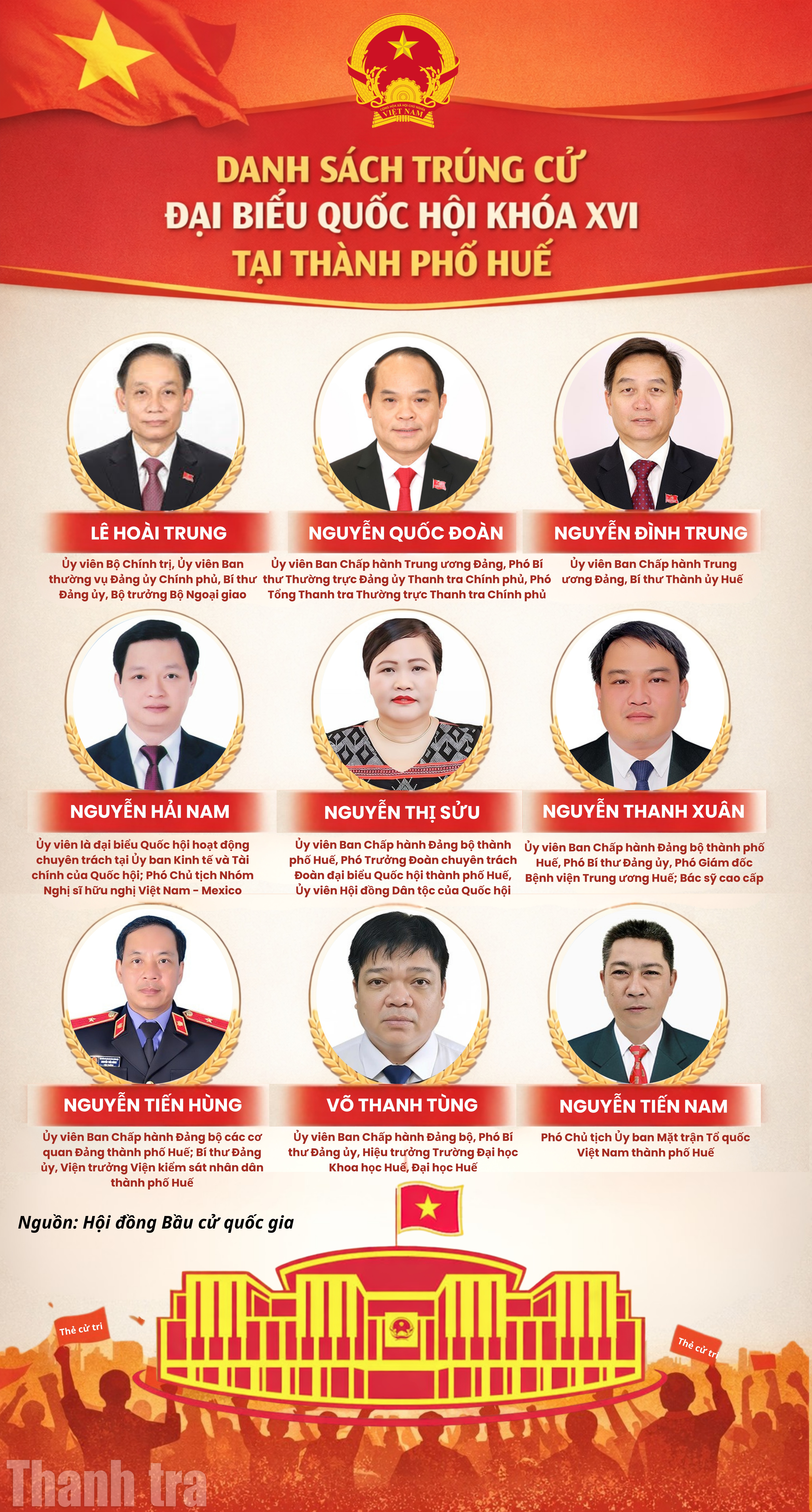 Báo Thanh tra giới thiệu danh sách 9 người trúng cử đại biểu Quốc hội khóa XVI tại TP Huế: