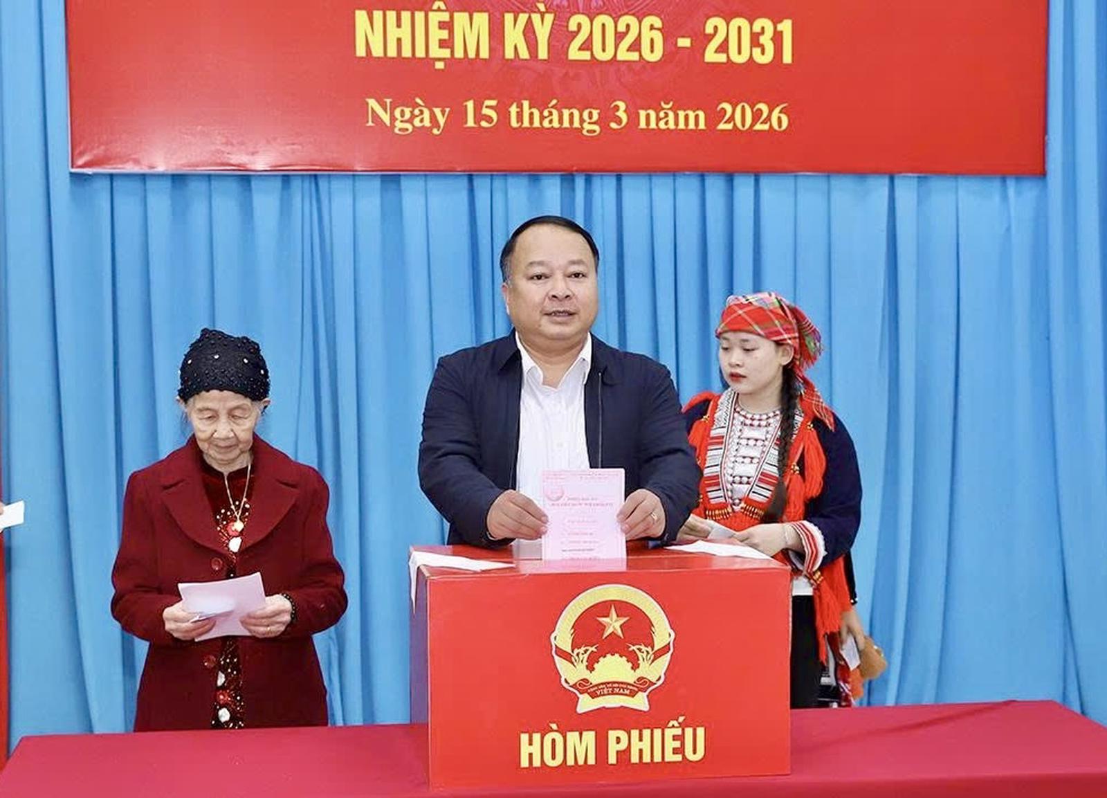 Trong ngày bầu cử, nhiều lãnh đạo tỉnh Tuyên Quang đã trực tiếp tham gia bỏ phiếu cùng cử tri tại các địa phương.