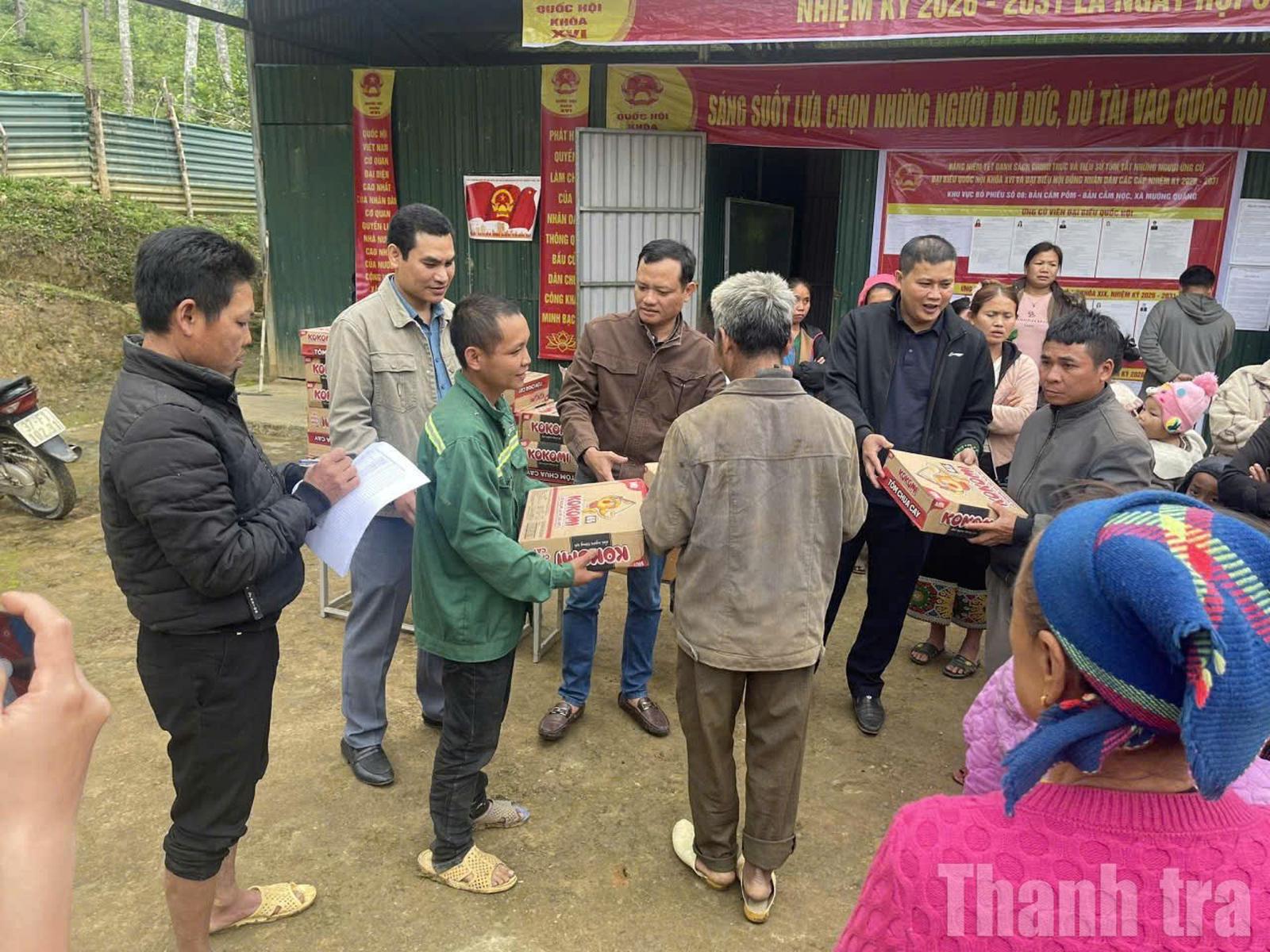 Trước ngày bầu cử, tổ công tác của chính quyền xã Mường Quảng đã lên tặng quà cho các hộ dân đồng bào Khơ Mú. Ảnh: Văn Thanh