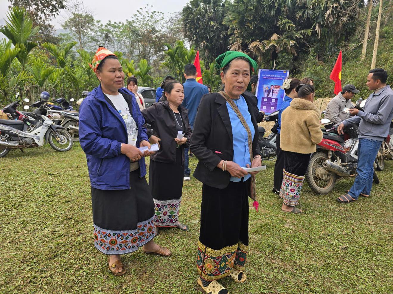 Sáng sớm ngày 13/3, sương mù vẫn còn bảng lảng trên những triền núi bao quanh xã Mường Quàng. Con đường đất dẫn vào bản Nậm Xái còn ướt đẫm hơi sương, nhưng trước nhà văn hóa bản đã rộn ràng tiếng nói cười.