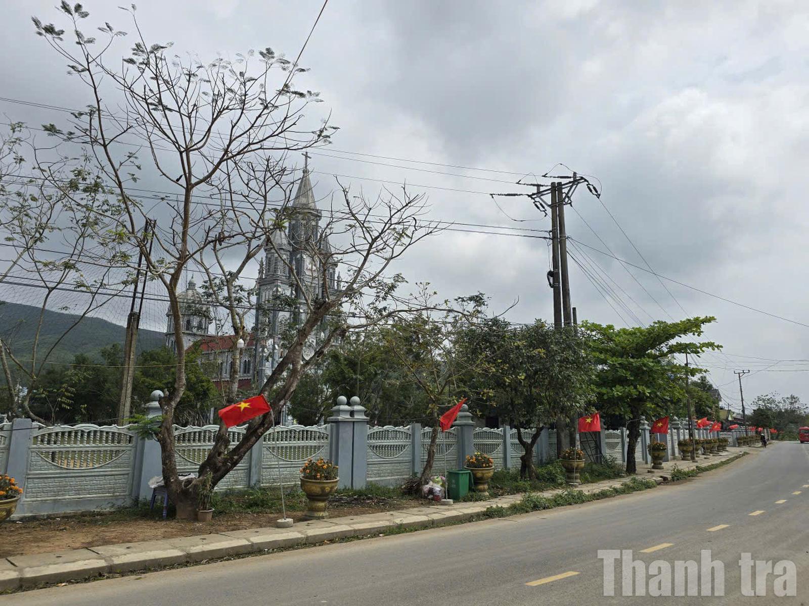 Xứ đạo Công Chính, tại các nhà thờ cũng trước trong ngày bầu cử đều được các giáo dân treo cờ Tổ quốc để hưởng ứng ngày bầu cử. Ảnh: Văn Thanh