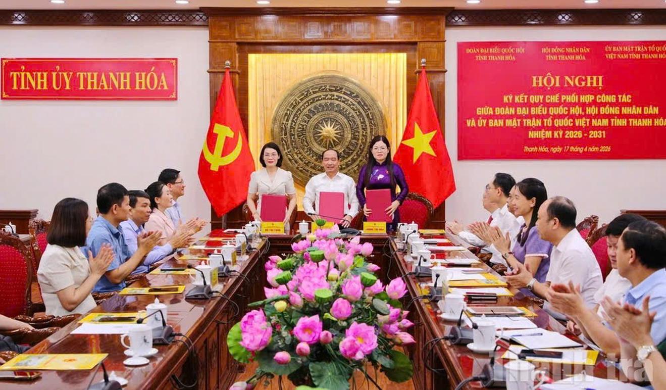 (Thanh tra) - Sáng 17/4, Đoàn ĐBQH, Thường trực HĐND và Ủy ban MTTQ Việt Nam tỉnh Thanh Hóa ký kết Quy chế phối hợp công tác nhiệm kỳ 2026–2031, đặt mục tiêu đổi mới toàn diện phương thức phối hợp, nâng cao chất lượng giám sát, phản biện và phục vụ Nhân dân.