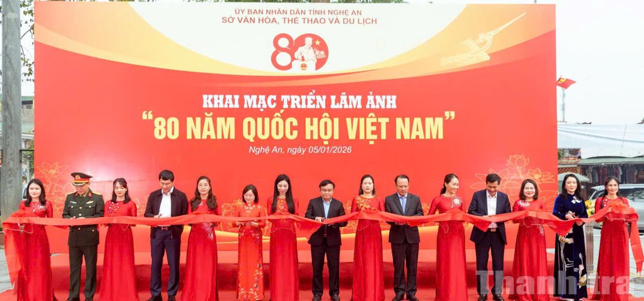 Sáng 5/1, Triển lãm ảnh “80 năm Quốc hội Việt Nam” chính thức khai mạc. Hoạt động do Sở Văn hóa, Thể thao và Du lịch Nghệ An chủ trì, phối hợp với Văn phòng Đoàn đại biểu Quốc hội và HĐND tỉnh tổ chức, hướng tới kỷ niệm 80 năm Ngày Tổng tuyển cử đầu tiên bầu Quốc hội Việt Nam (6/1/1946 - 6/1/2026) và ngày hội bầu cử đại biểu Quốc hội khóa XVI, HĐND các cấp nhiệm kỳ 2026 - 2031.