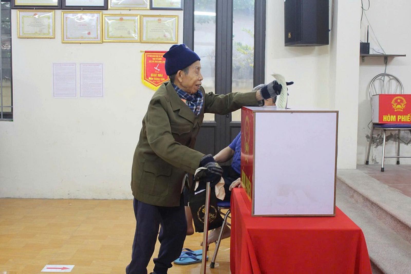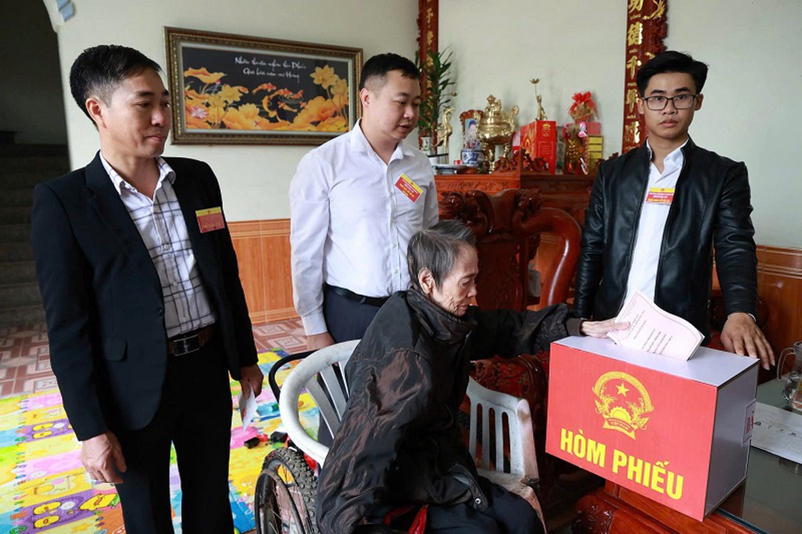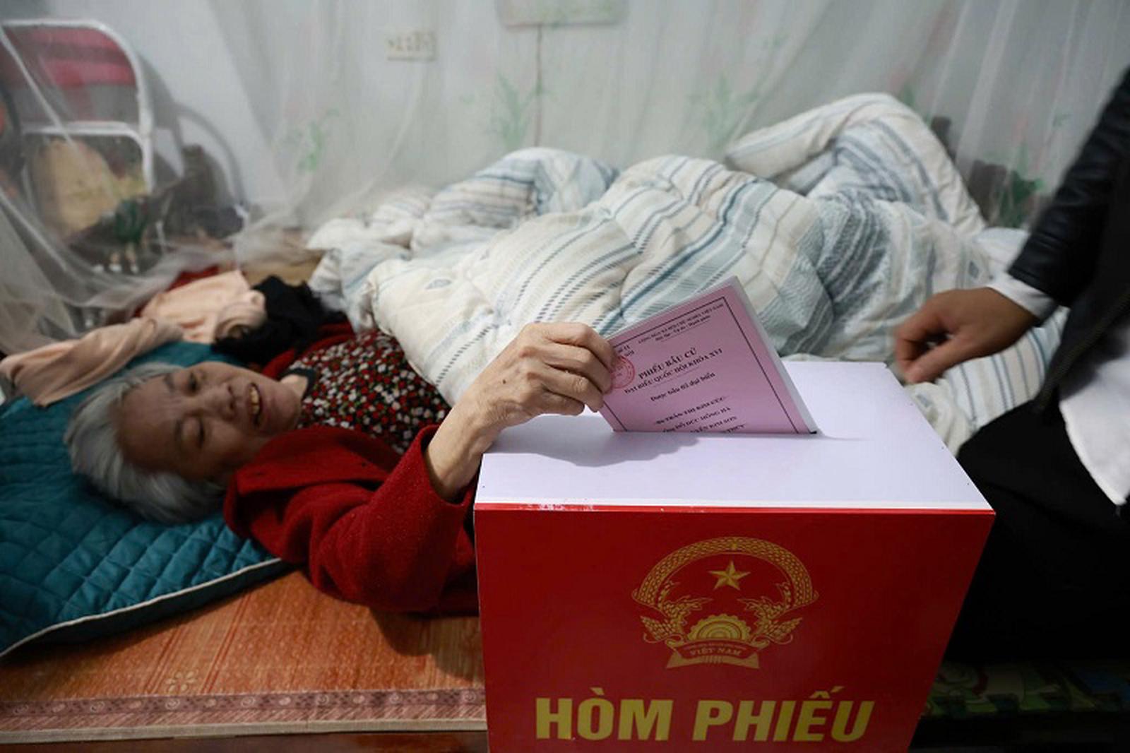 Đặc biệt, tại tổ bầu cử 31, đơn vị bầu cử số 6, xã Nội Bài - TP Hà Nội tổ bầu cử đã mang hòm phiếu phụ tới gia đình cụ Nguyễn Thị Tý - cử tri đặc biệt 115 tuổi, bỏ lá phiếu đầu tiên.