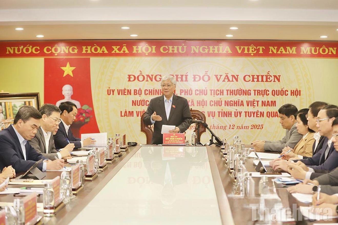 Phát biểu tại buổi làm việc, Phó Chủ tịch Thường trực Quốc hội Đỗ Văn Chiến biểu dương những kết quả tỉnh Tuyên Quang chỉ đạo, triển khai sau khi thực hiện chính quyền địa phương 2 cấp và tình hình phát triển kinh tế - xã hội của tỉnh trong năm 2025.