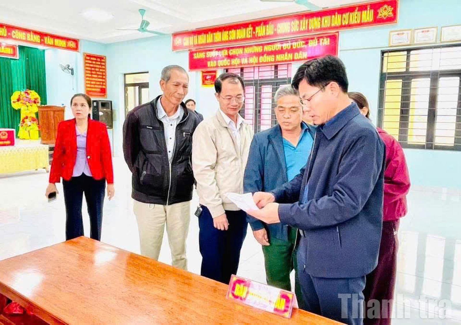 Chủ tịch UBND xã Trường Ninh Trương Ngọc Quý kiểm tra điểm bầu cử số 1. Ảnh: LHC