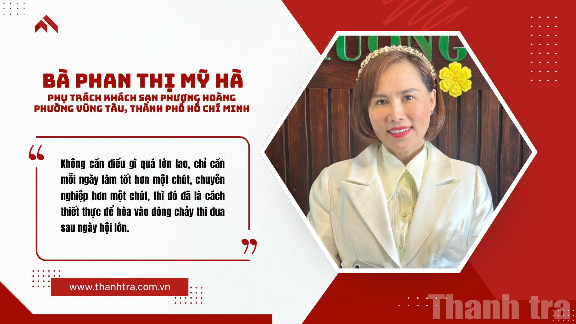 Để bắt nhịp với khí thế chung, khách sạn đã rà soát lại toàn bộ quy trình phục vụ, từ khâu đón tiếp đến các dịch vụ đi kèm. Với bà Hà, thi đua là làm tốt từng công việc nhỏ nhất. “Một nụ cười đúng lúc, một phòng nghỉ được chuẩn bị chu đáo, một phản hồi nhanh với yêu cầu của khách, đó chính là thi đua”, bà chia sẻ.