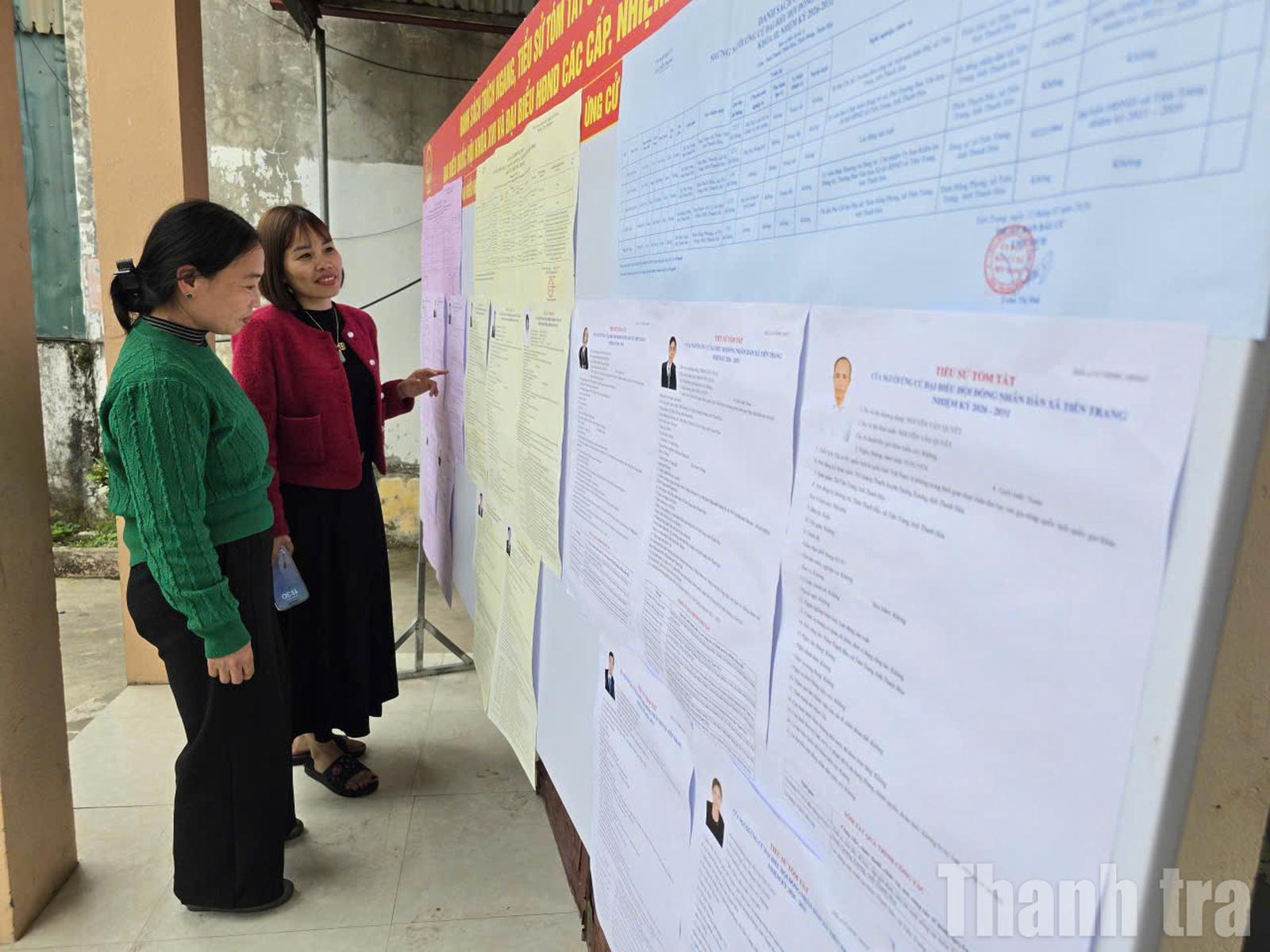 Những ngày đầu tháng 3, tại các khu dân cư của xã Tiên Trang, cờ hoa, băng rôn, khẩu hiệu tuyên truyền về bầu cử đã được treo dọc theo các trục đường chính và tại các nhà văn hóa thôn. Danh sách cử tri, tiểu sử tóm tắt của các ứng cử viên được niêm yết công khai, giúp người dân dễ dàng theo dõi, tìm hiểu trước khi thực hiện quyền bầu cử.