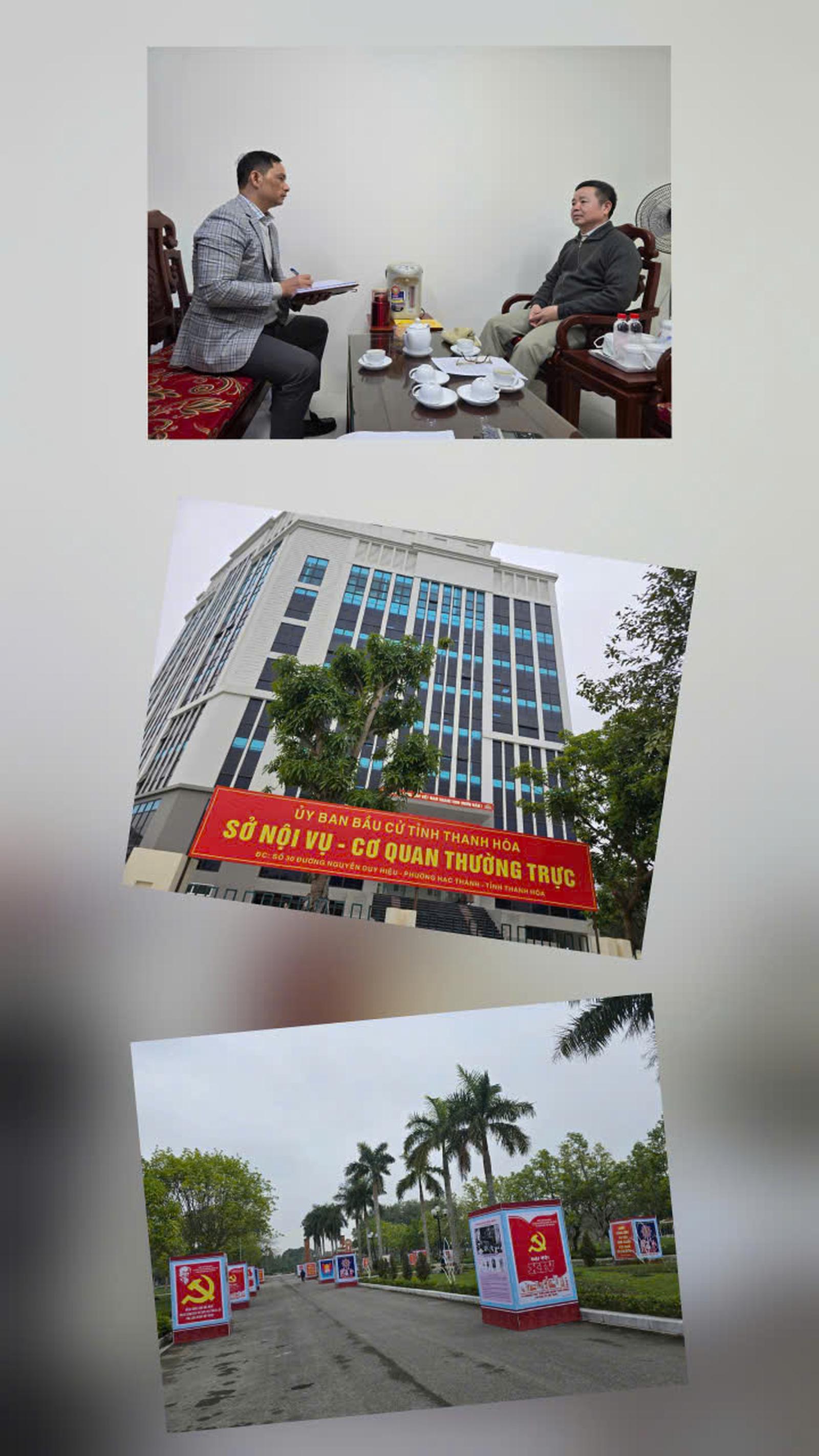Ông Nguyễn Văn Chiến, Phó Giám đốc Sở Nội vụ Thanh Hóa (bên phải ảnh) trao đổi với phóng viên Báo Thanh tra về công tác chuẩn bị bầu cử và HĐND các cấp. Ảnh: Văn Thanh