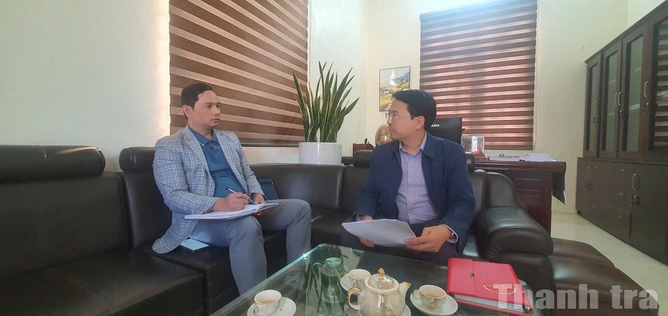 Phó Bí thư Thường trực Đảng ủy xã Trường Lâm (phải ảnh) trao đổi với phóng viên Báo Thanh tra. Ảnh: Văn Thanh