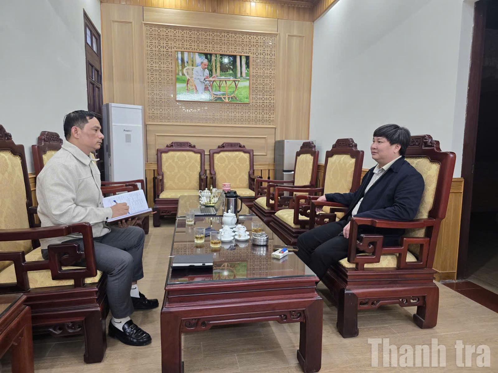 Ông Nguyễn Đăng Trường, Chủ tịch UBND xã Yên Định (phải ảnh) trao đổi với phóng viên Báo Thanh tra về công tác bầu cử. Ảnh: Văn Thanh