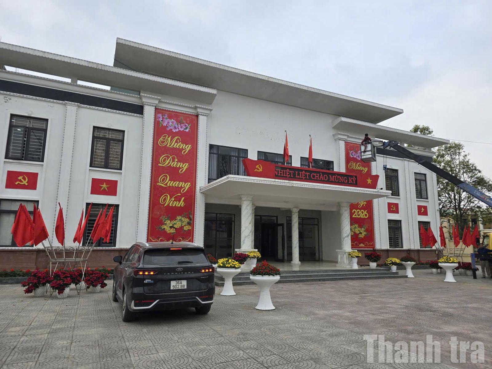 Trụ sở Đảng ủy phường Đông Quang rực rỡ cờ hoa chuẩn bị cho ngày bầu cử. Ảnh: Văn Thanh