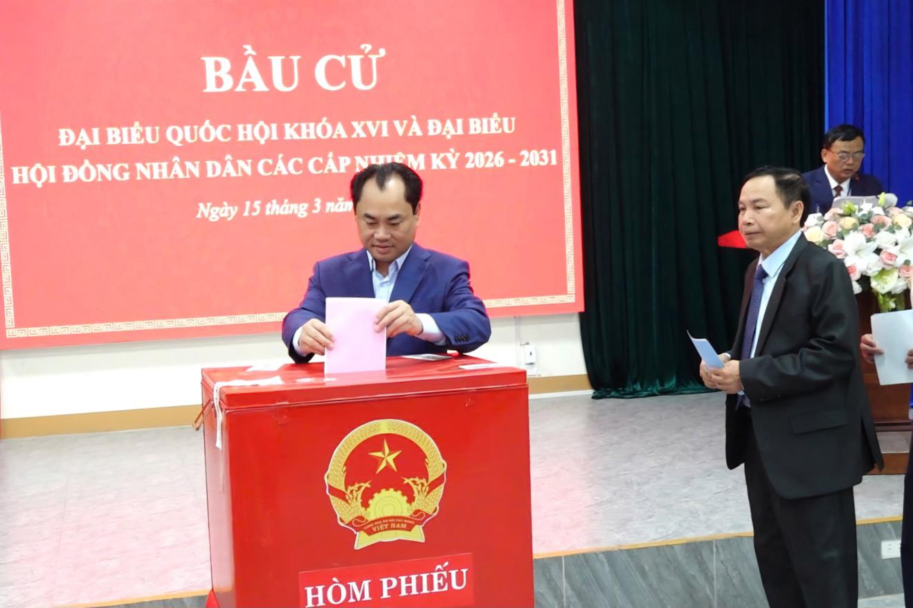 (Thanh tra) - Sáng ngày 15/3/2026, ông Lê Văn Lương – Phó Bí thư Tỉnh ủy, Chủ tịch UBND tỉnh Điện Biên đã tới dự lễ khai mạc bầu cử đại biểu Quốc hội khóa XVI và đại biểu HĐND các cấp nhiệm kỳ 2026 – 2031 tại khu vực bỏ phiếu số 11, xã Thanh Yên, tỉnh Điện Biên.