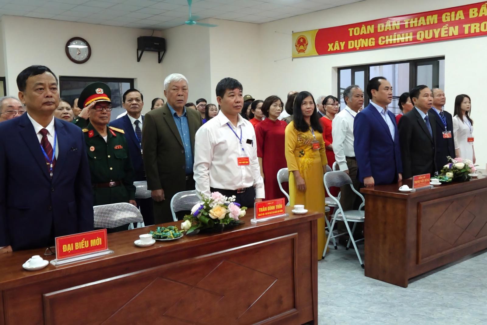 Cử tri thực hiện nghi thức chào cờ tại điểm bầu cử Tổ bầu cử số 15, phường Phan Đình Phùng. Ảnh: Nguyễn Liên