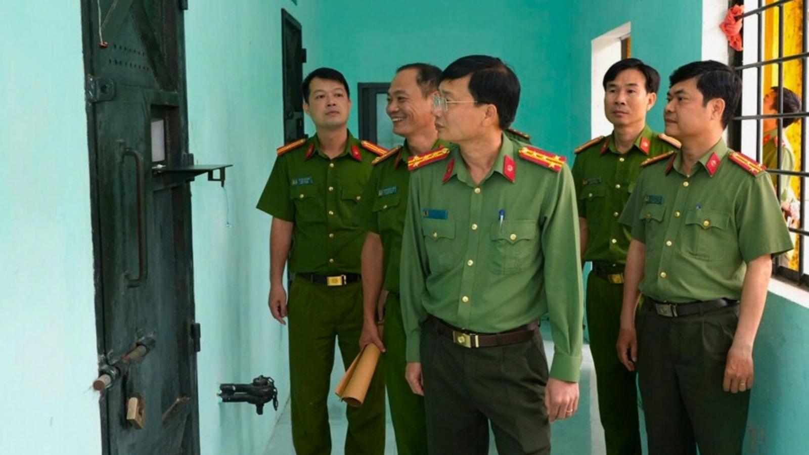 Đại tá Dương Văn Thoan, Phó Giám đốc Công an TP Huế kiểm tra công tác chuẩn bị tổ chức bầu cử tại Trại tạm giam Công an thành phố. Ảnh: HN
