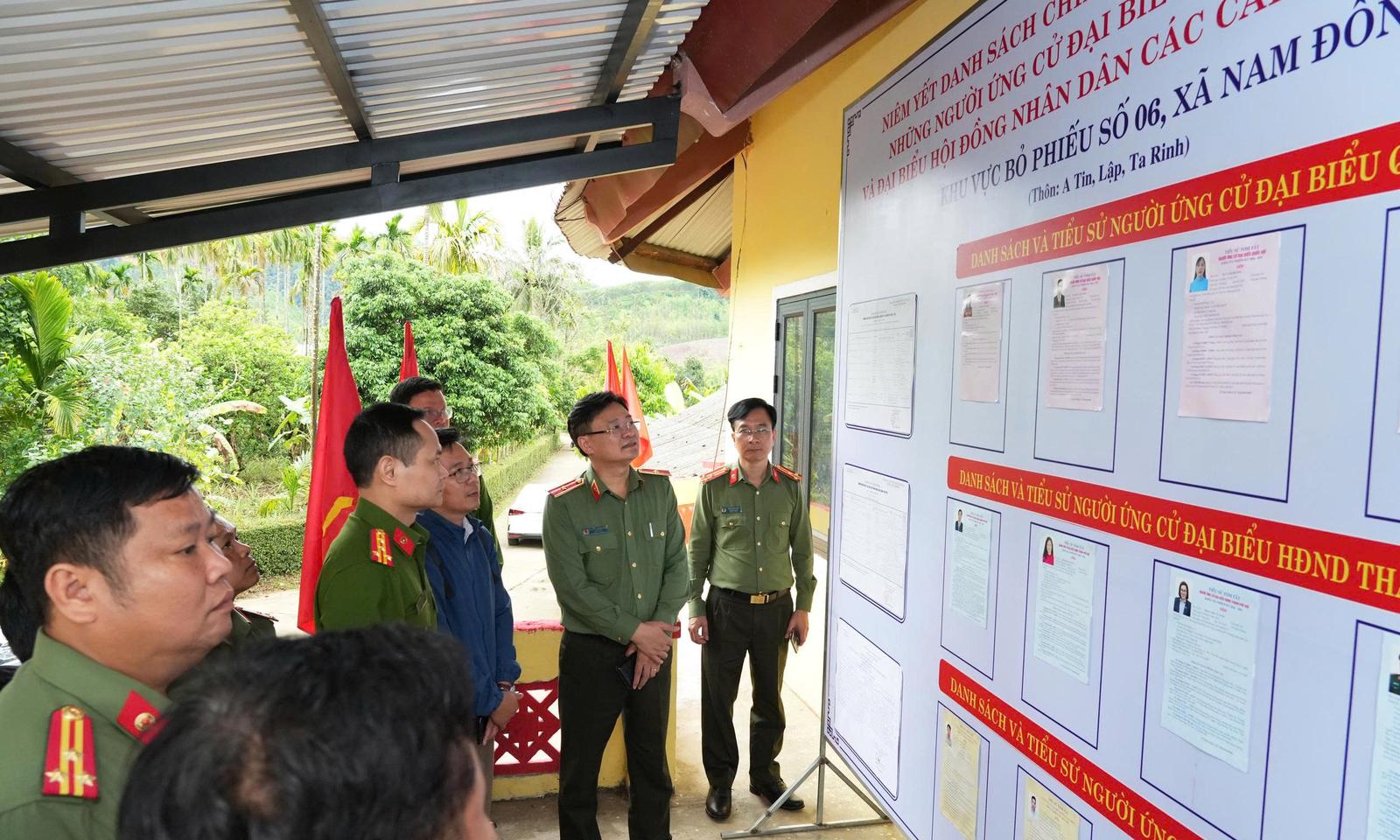 Thiếu tướng Nguyễn Thanh Tuấn, Giám đốc Công an TP Huế kiểm tra công tác bầu cử tại xã miền núi Nam Đông. Ảnh: HN
