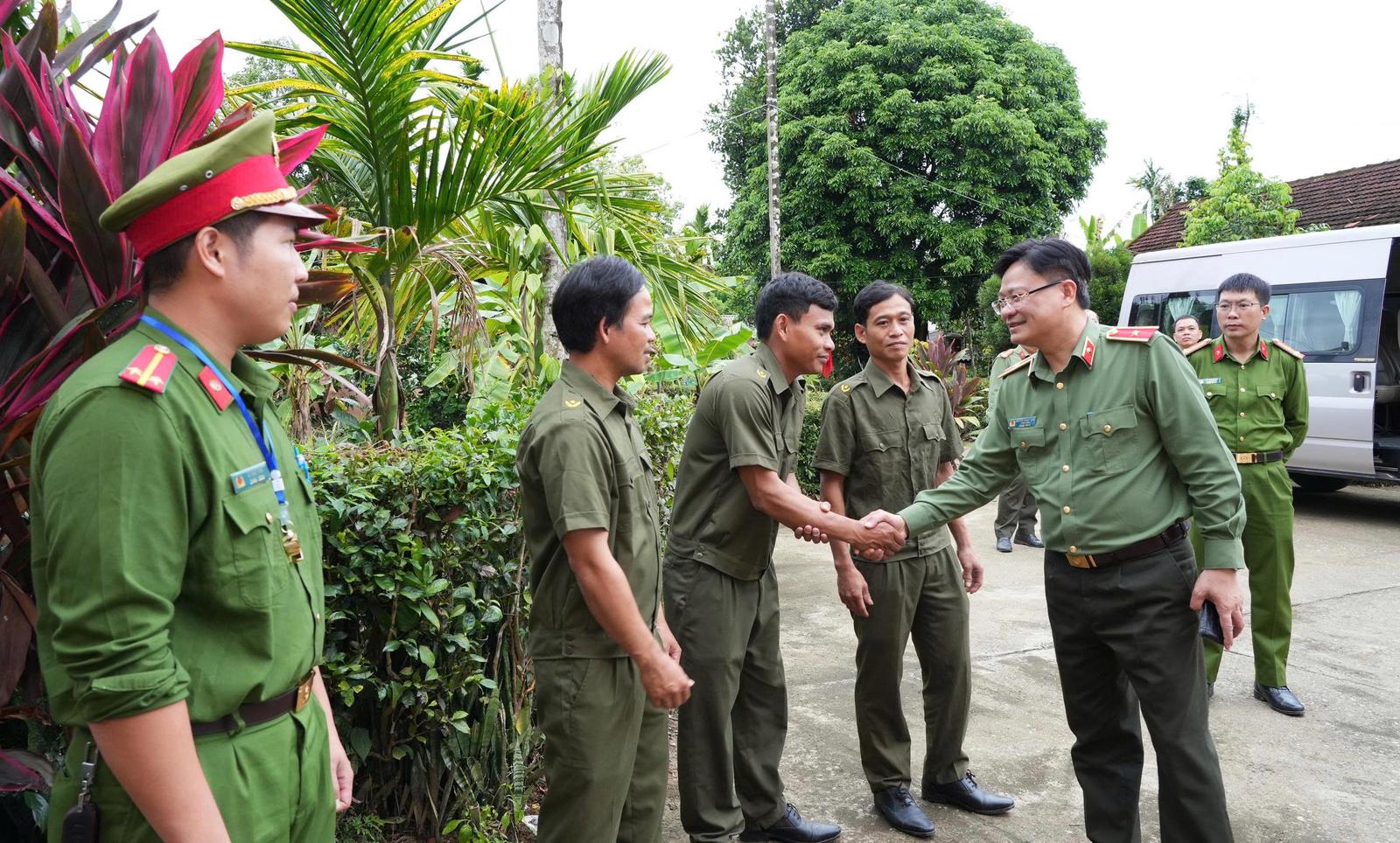 Thiếu tướng Nguyễn Thanh Tuấn, Giám đốc Công an TP Huế thăm hỏi, động viên lực lượng Công an xã bám địa bàn bảo đảm an ninh, trật tự bầu cử đại biểu Quốc hội và HĐND các cấp, nhiệm kỳ 2026 - 2031. Ảnh: VA