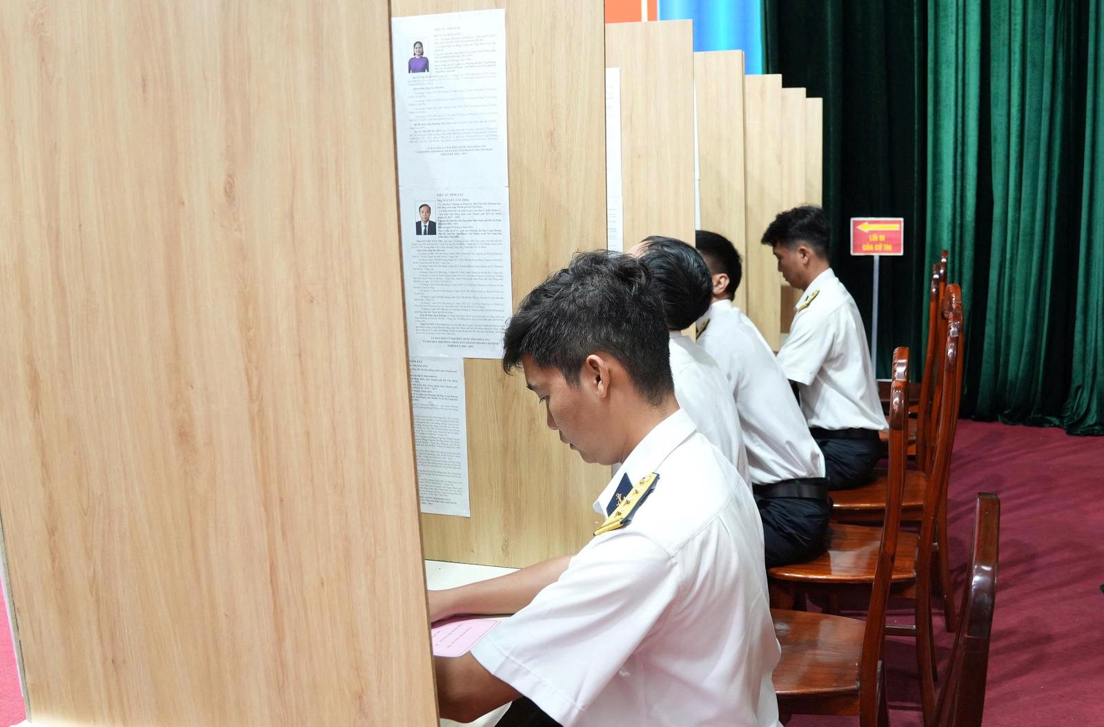 Trong không khí phấn khởi, trách nhiệm, các cử tri thuộc các tàu của Vùng Cảnh sát biển 3, Chi đội Kiểm ngư số 2 và Hải đội Dân quân thường trực TPHCM (các tàu xuất phát làm nhiệm vụ trước ngày bầu cử 15/3) đã nghiên cứu kỹ danh sách người ứng cử, sáng suốt lựa chọn những đại biểu tiêu biểu, xứng đáng và tiến hành bỏ phiếu đúng trình tự, thủ tục.