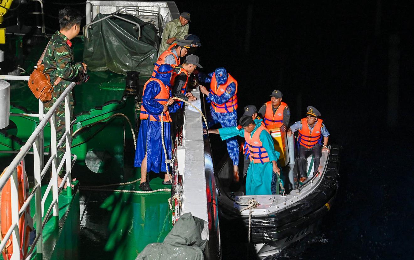 Đêm 26/2, giữa điều kiện thời tiết phức tạp, Tổ bầu cử vẫn xuống xuồng cơ động để sang Tàu CSB 6008. Ảnh: Đức Định