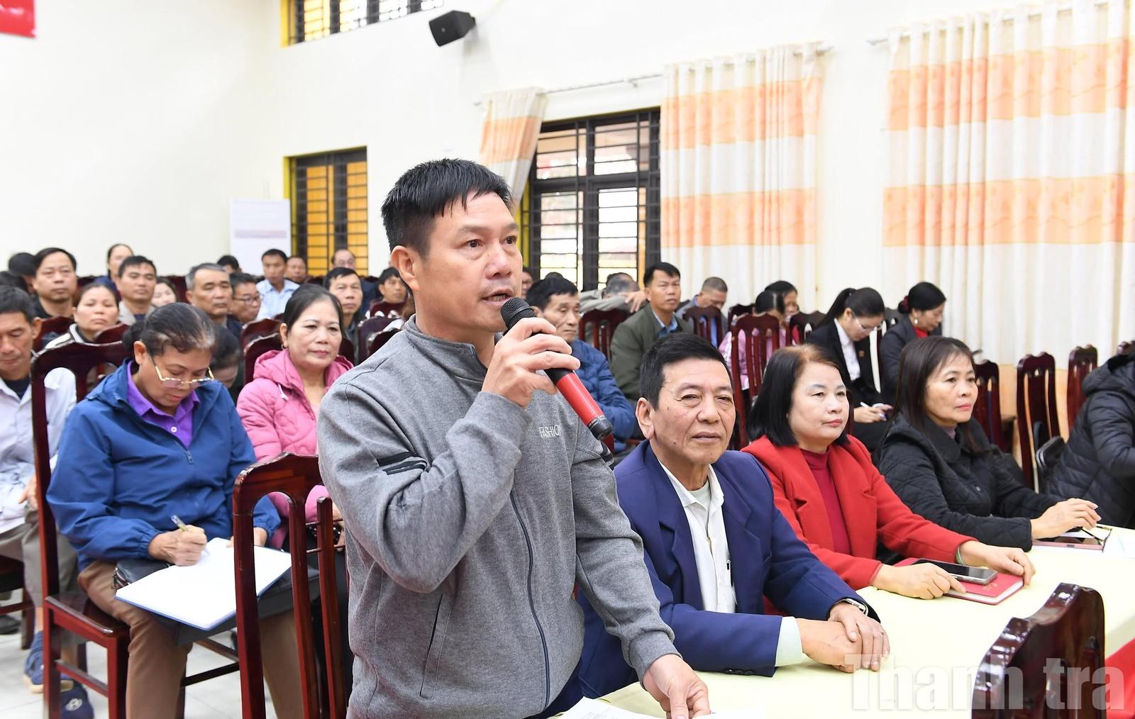 Cử tri xã Sơn Dương nêu kiến nghị tại buổi tiếp xúc. Ảnh: ND