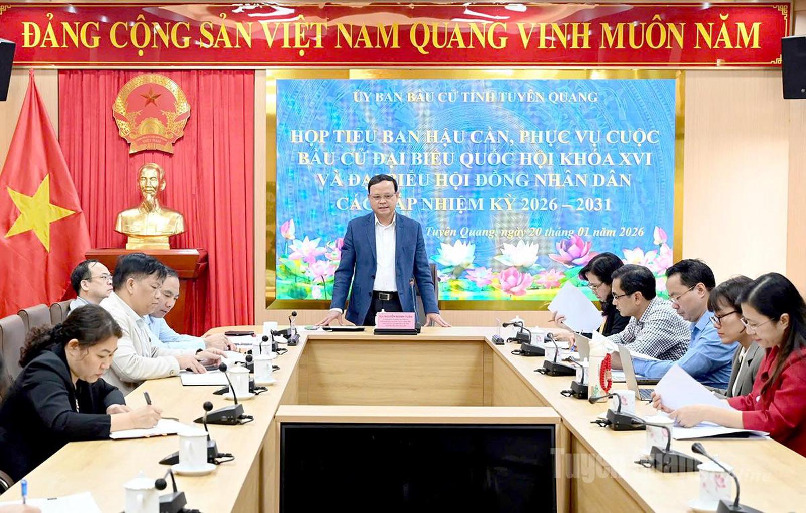 Ông Nguyễn Mạnh Tuấn, Phó Chủ tịch Thường trực UBND tỉnh, Phó Chủ tịch Ủy ban bầu cử tỉnh, Trưởng Tiểu ban Hậu cần phát biểu tại cuộc họp của Tiểu ban Hậu cần, phục vụ cuộc bầu cử ĐBQH khóa XVI và đại biểu HĐND các cấp nhiệm kỳ 2026 - 2031. Ảnh: Báo Tuyên Quang