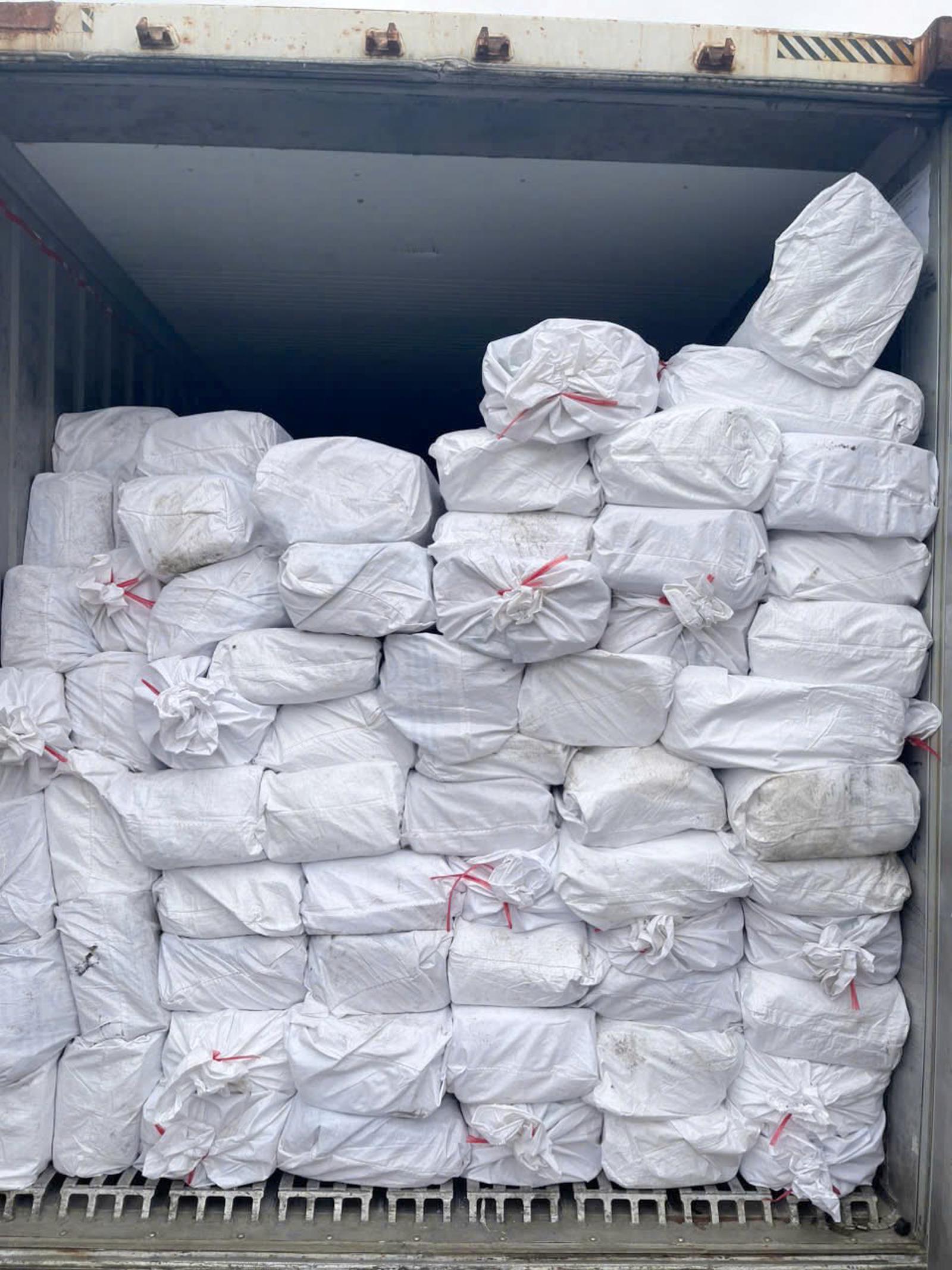 Chỉ một phần nhỏ chân gà rút xương được xếp ở đầu mỗi container, phần phía trong để trống, nhằm qua mắt lực lượng chức năng. Ảnh: HQ