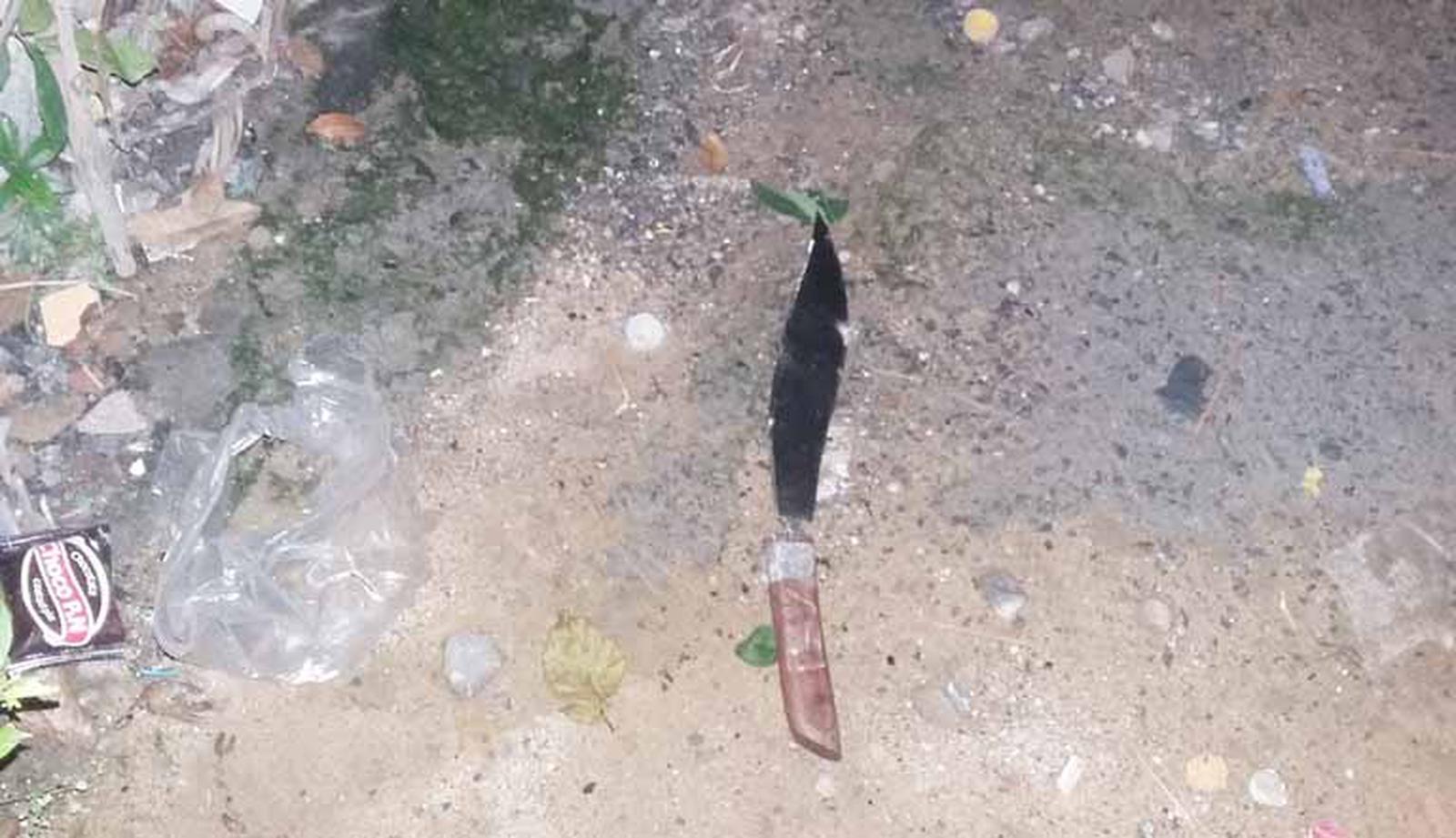 Con dao dài khoảng 40cm vứt lại tại hiện trường. Ảnh: CT
