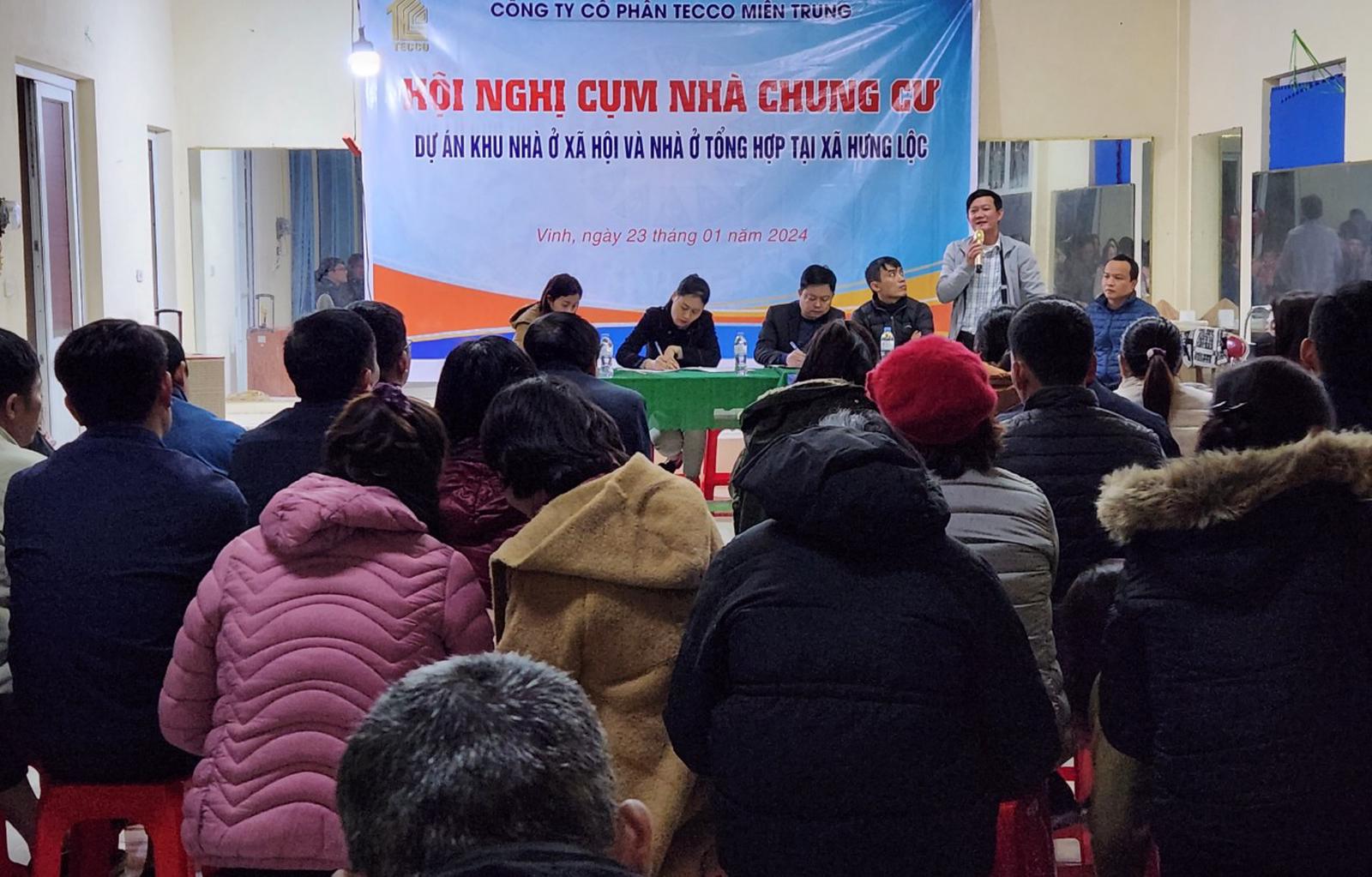 Xã Hưng Lộc, TP Vinh phối hợp chủ đầu tư tổ chức hội nghị nhà chung cư theo quy định của Thông tư 02/2016 của Bộ Xây dựng. Ảnh: Đức Anh
