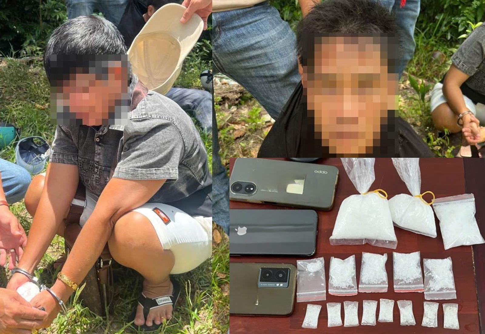 Cũng tại đặc khu Phú Quốc, Phòng Cảnh sát điều tra tội phạm về ma túy, Công an tỉnh An Giang phối hợp Công an đặc khu Phú Quốc phát hiện 2 đối tượng đi xe máy có dấu hiệu nghi vấn. Qua kiểm tra, công an thu giữ trên tay đối tượng 1 túi nilon bên trong có 3 bịch tinh thể nghi là ma túy và 1 cân tiểu ly.