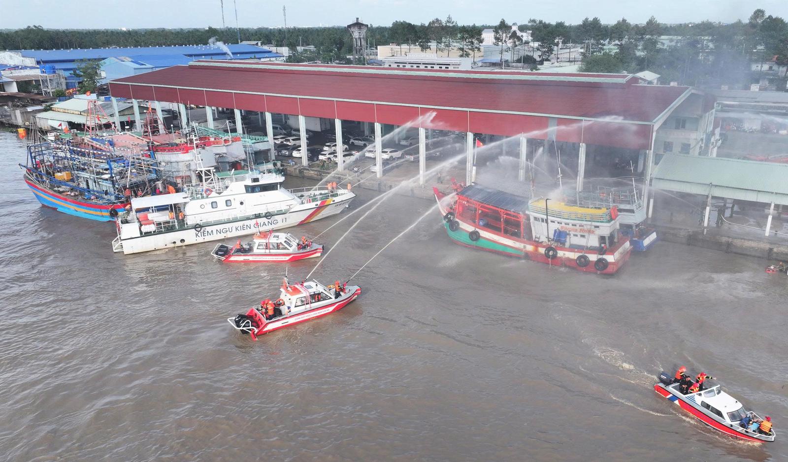 (Thanh tra) - Chiều ngày 12/12, tại Cảng cá Tắc Cậu (xã Bình An), UBND tỉnh An Giang tổ chức diễn tập phương án chữa cháy và cứu nạn, cứu hộ cấp tỉnh năm 2025. Cuộc diễn tập có sự tham gia của 35 đơn vị, với hơn 500 cán bộ, chiến sĩ và lực lượng phối hợp, cùng nhiều phương tiện, trang thiết bị hiện đại.