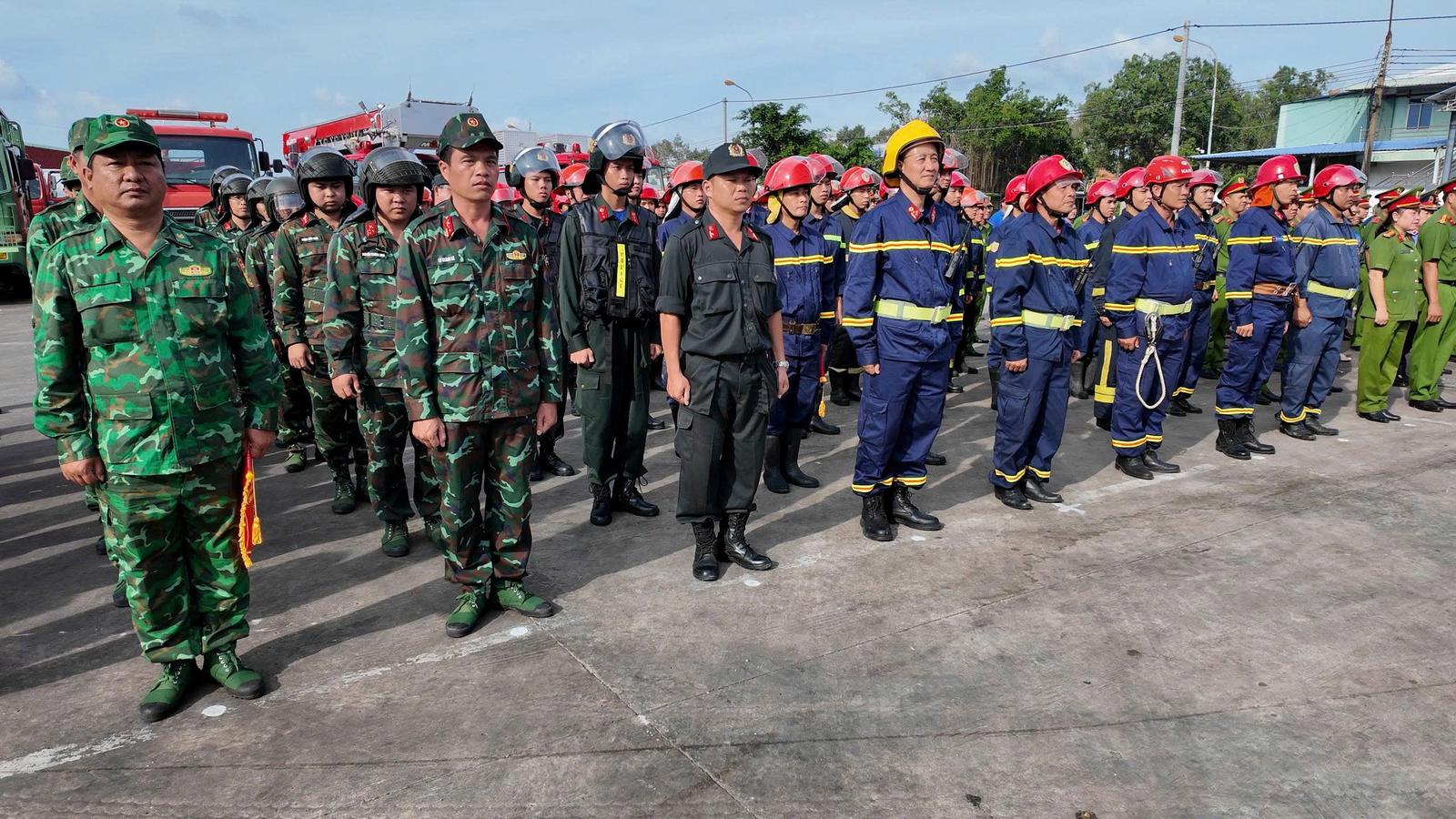 Lực lượng tham gia diễn tập. Ảnh: Công an An Giang