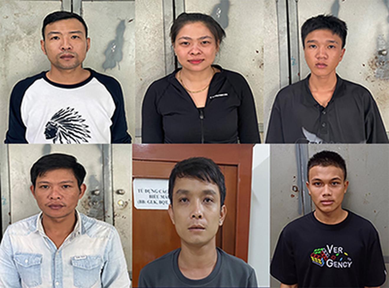Các đối tượng bị khởi tố bị can, bắt tam giam gồm: Danh Tuấn (sinh năm 1991); Trần Thị Hạnh (vợ Tuấn, sinh năm 1998); Trần Văn Bảo (sinh năm 1991); Hồ Thanh Hậu (sinh năm 1993), cùng trú huyện An Biên, tỉnh Kiên Giang và Nguyễn Văn Đan Thuần (sinh năm 2006); Trần Văn Quí (sinh năm 2006), cùng trú huyện Chợ Mới.