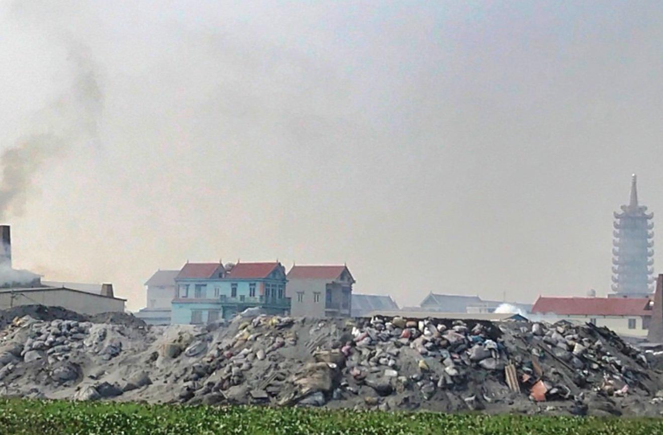 Những đống rác thải, chất thải chất cao "thành núi” ở làng nghề xã Văn Môn. Ảnh: HH