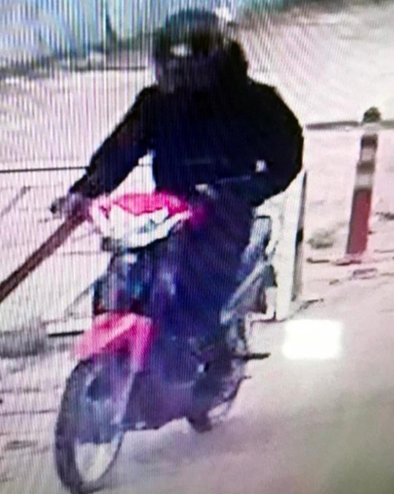 Sau khi cướp được tiền từ ngân hàng, nghi phạm lên xe máy tẩu thoát. Ảnh: Công an cung cấp