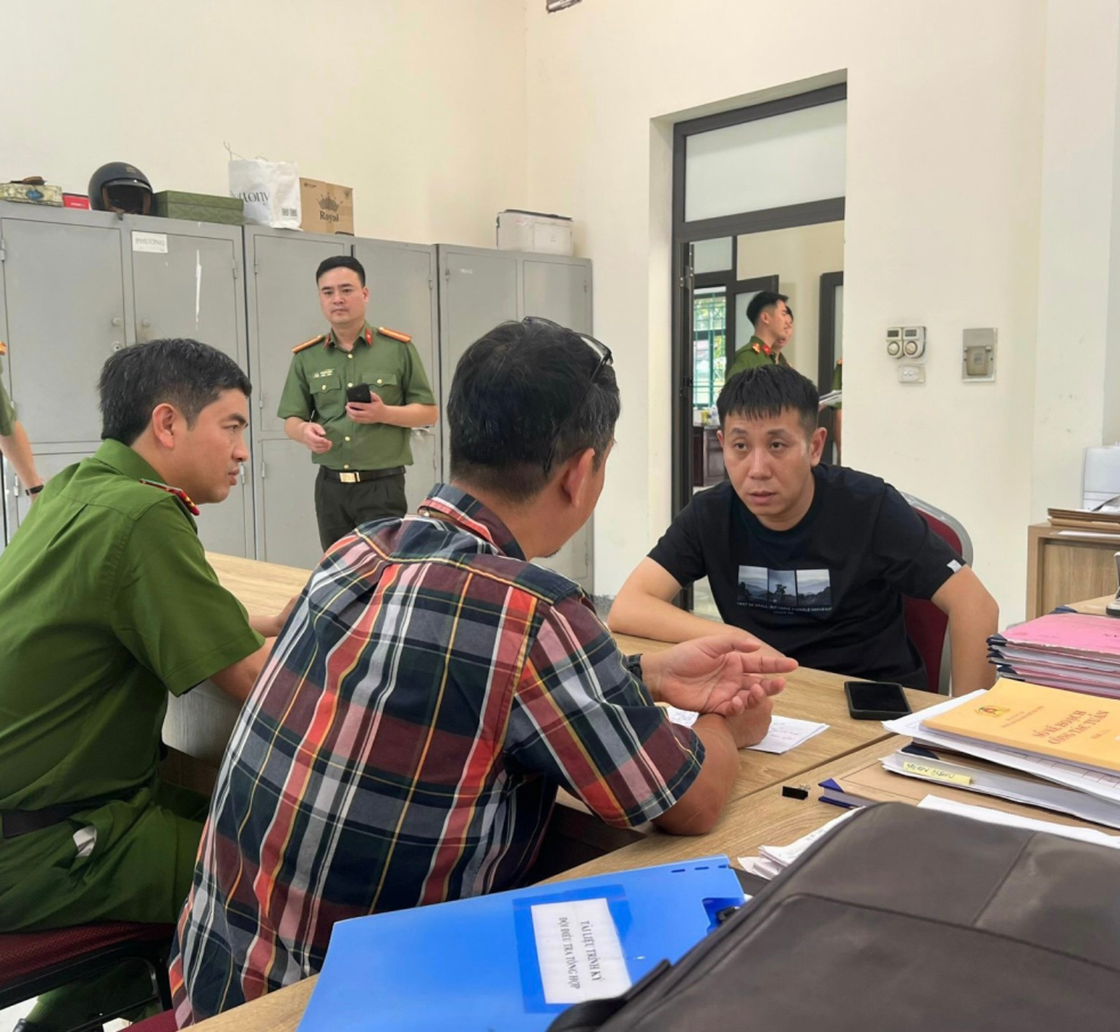 Công an quận Tây Hồ làm việc với Liu Zhi Fang tại trụ sở. Ảnh: Công an TP Hà Nội