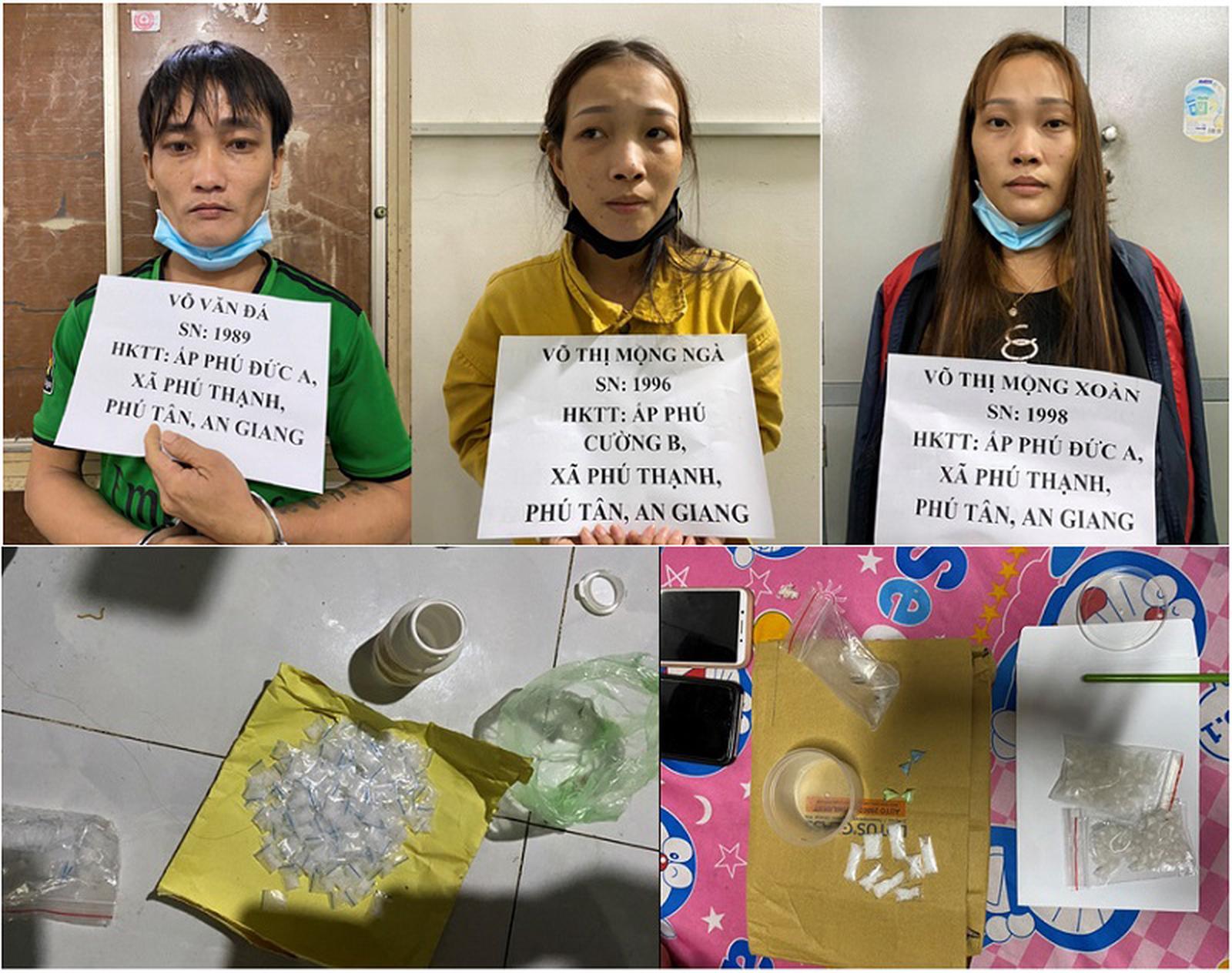 Bước đầu, các đối tượng khai mua số ma túy trên của một đối tượng lạ ở TP Châu Đốc về phân chia để bán kiếm lời, chưa kịp tiêu thụ hết thì bị lực lượng Công an phát hiện, bắt giữ.