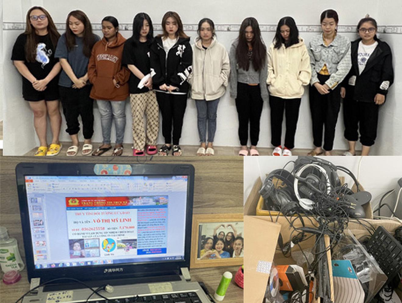 Qua khai thác nhanh đối tượng Như cùng các thông tin thu được, các đơn vị chức năng Công an TP Cần Thơ tiến hành kiểm tra căn nhà trên đường số 3, khu dân cư Nông Thổ Sản, phường Phú Thứ, quận Cái Răng, phát hiện, bắt giữ 10 đối tượng đang thực hiện các hành vi đòi nợ cho Công ty Bamboo, đòi nợ ứng dụng vay tiền trên mạng do người Trung Quốc điều hành.